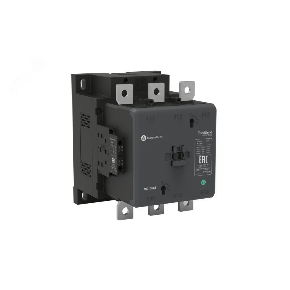 Контактор серии SystemePact MC1G на номинальный ток 400 А, 3P, 2НО+2НЗ, напряжение управления – 100…250 В пер./пост. тока, защита от просадок напряжения от 0,7 до 1,2 Us, крепеж – на монтажной плате. Контакторы серии SystemePact MC1G разработаны для управления двигателями различных типов, а также насосами, лифтов и системами вентиляции. Они имеют увеличенный электрический и механический ресурс, могут оснащаться дополнительными контактами, тепловыми реле, механическими блокировками.