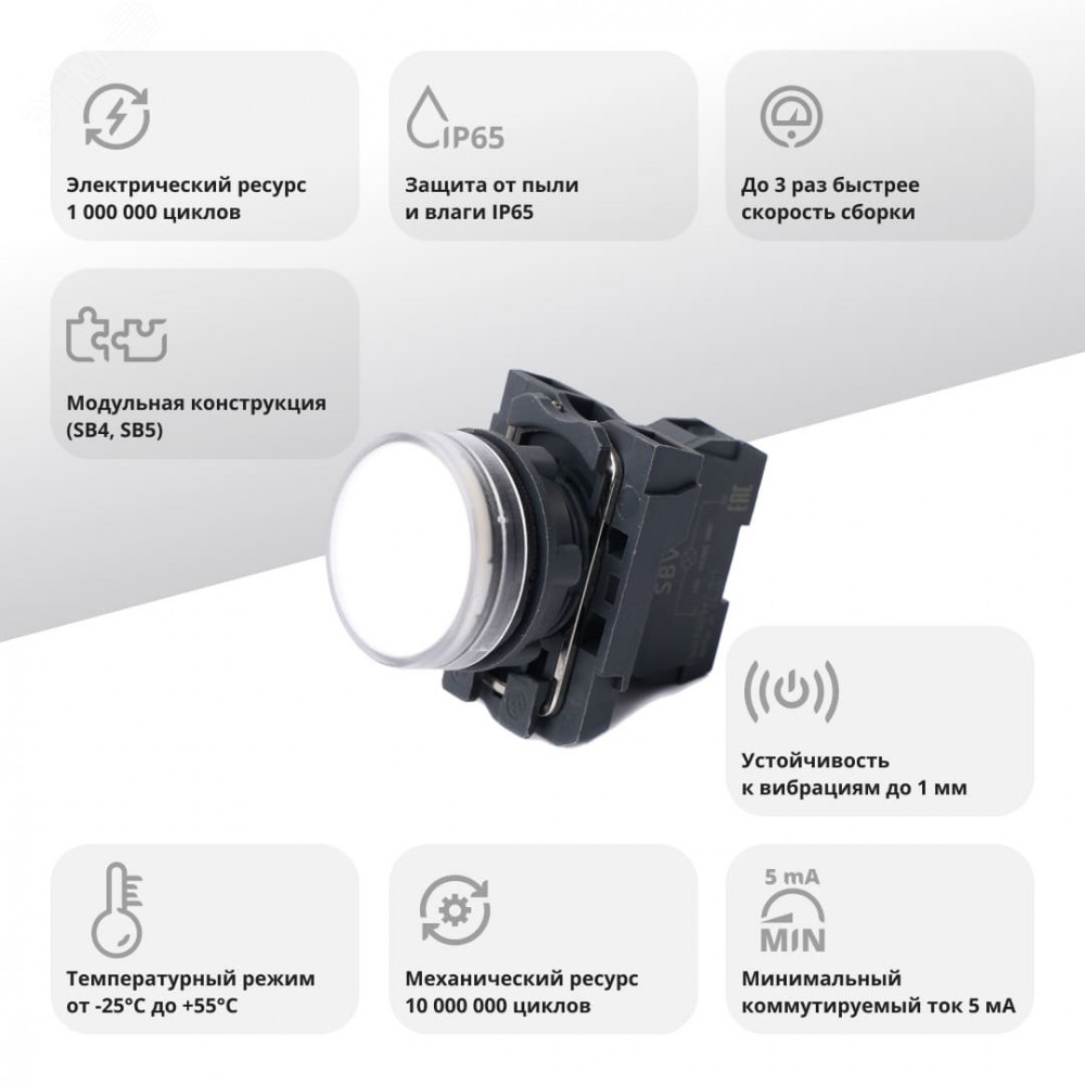 Доставка Лампа сигнальная SB5 в сборе модульная 22 мм белая 24В DC SB5AVB1