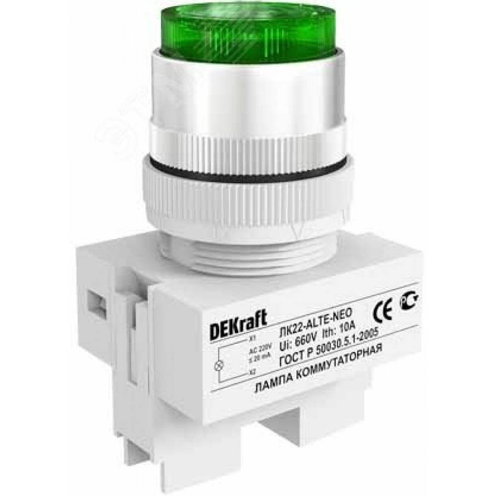 Лампа ALTE 22мм зеленая с подсветкой неон 220В 25007DEK, Аксессуар для поста кнопочного и светосигнальной арматуры