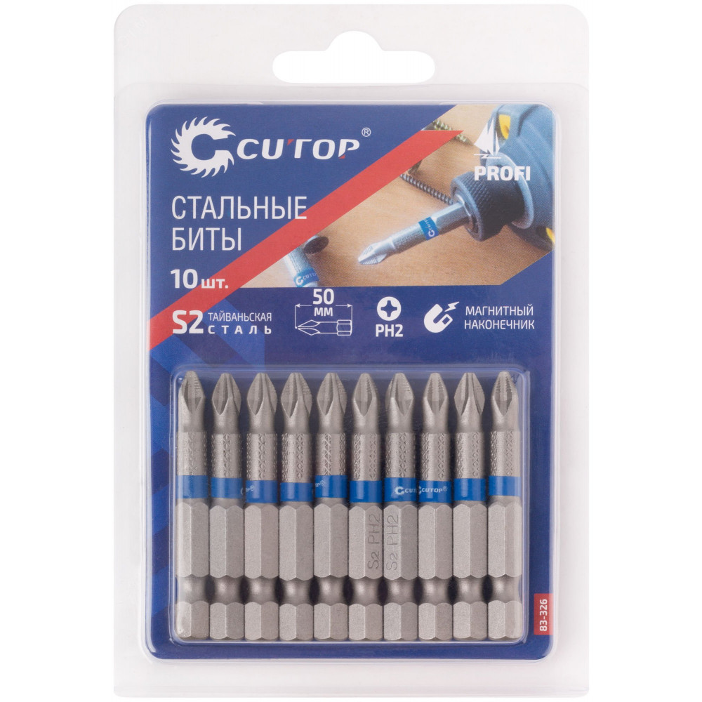 Биты стальные, Profi, PH2, 50 мм (набор 10 штук) 83-326