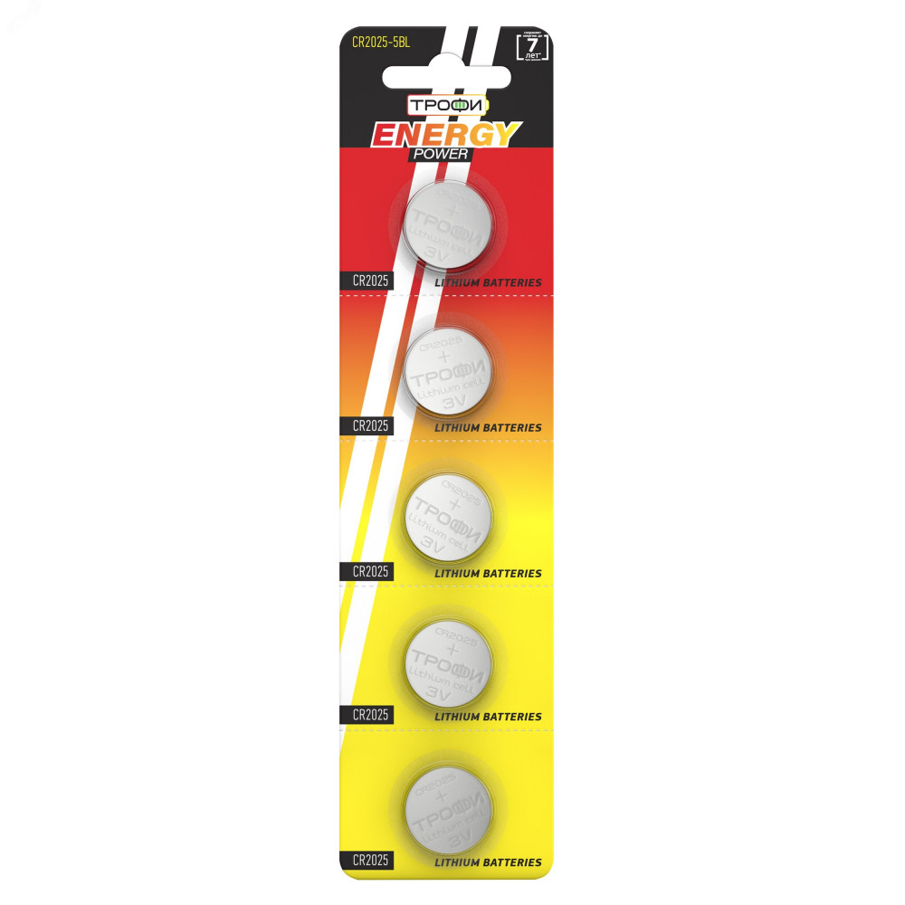 Описание Батарейка Трофи CR2025-5BL ENERGY POWER Lithium (100/1000/78000) C0032184