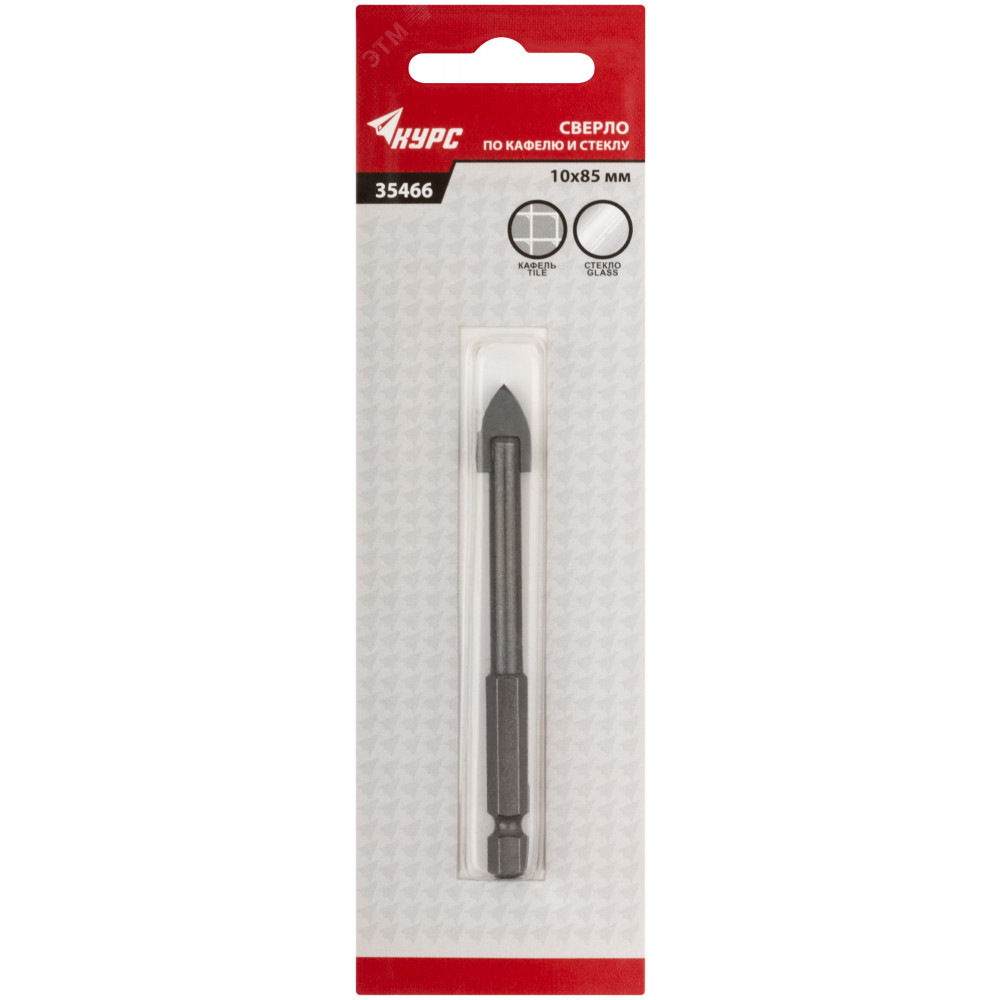 Сверло по кафелю и стеклу, шестигранный U-хвостовик под биту 10х85 мм 35466, Сверло, метчик, плашка