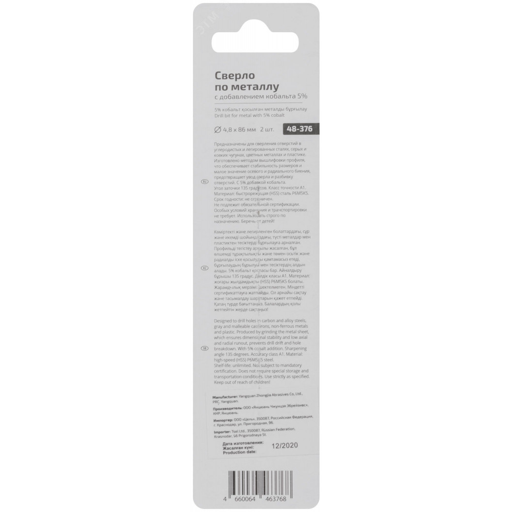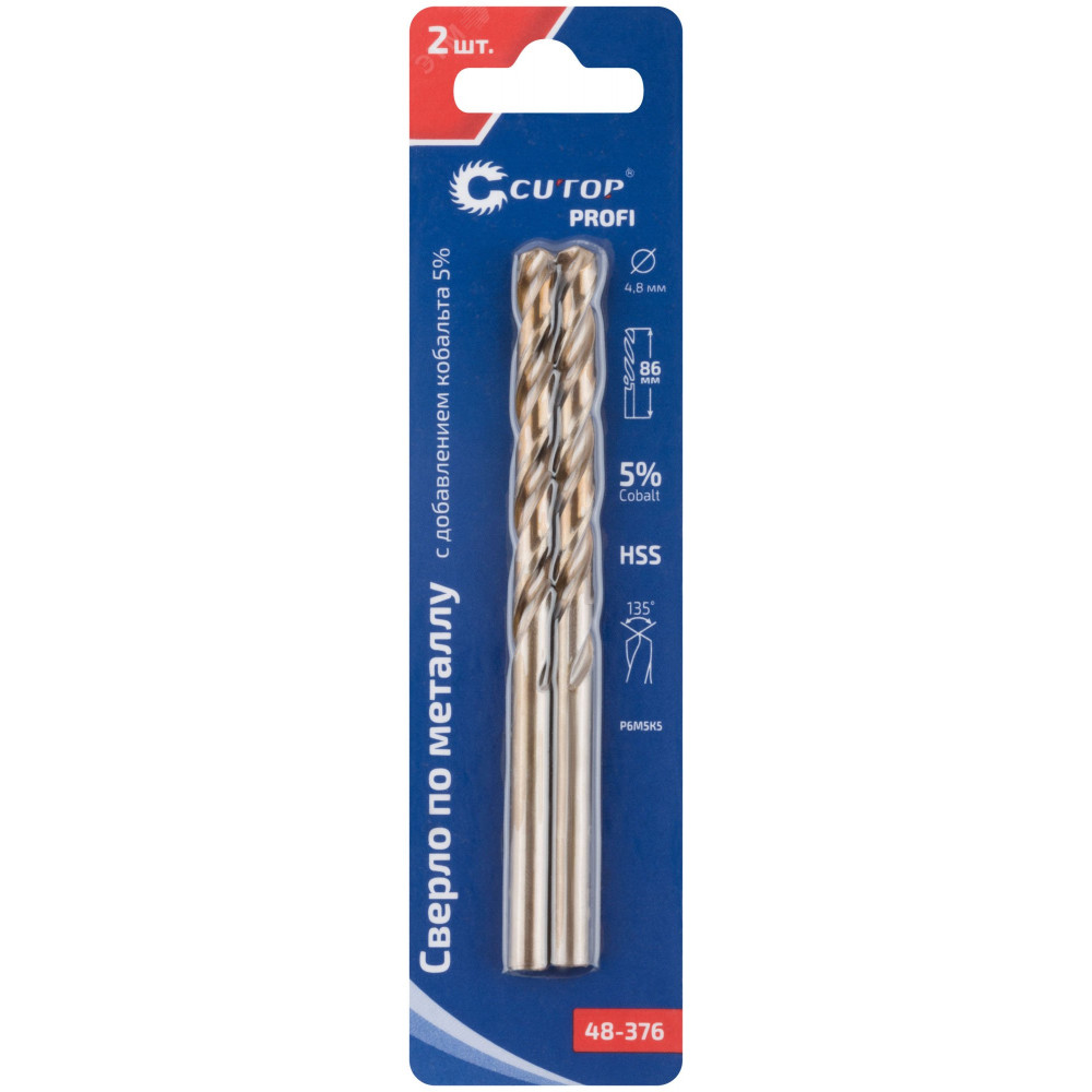 Сверло по металлу Cutop Profi с кобальтом 5% 4.8 x 86 мм, 2 шт 48-376, Сверло, метчик, плашка