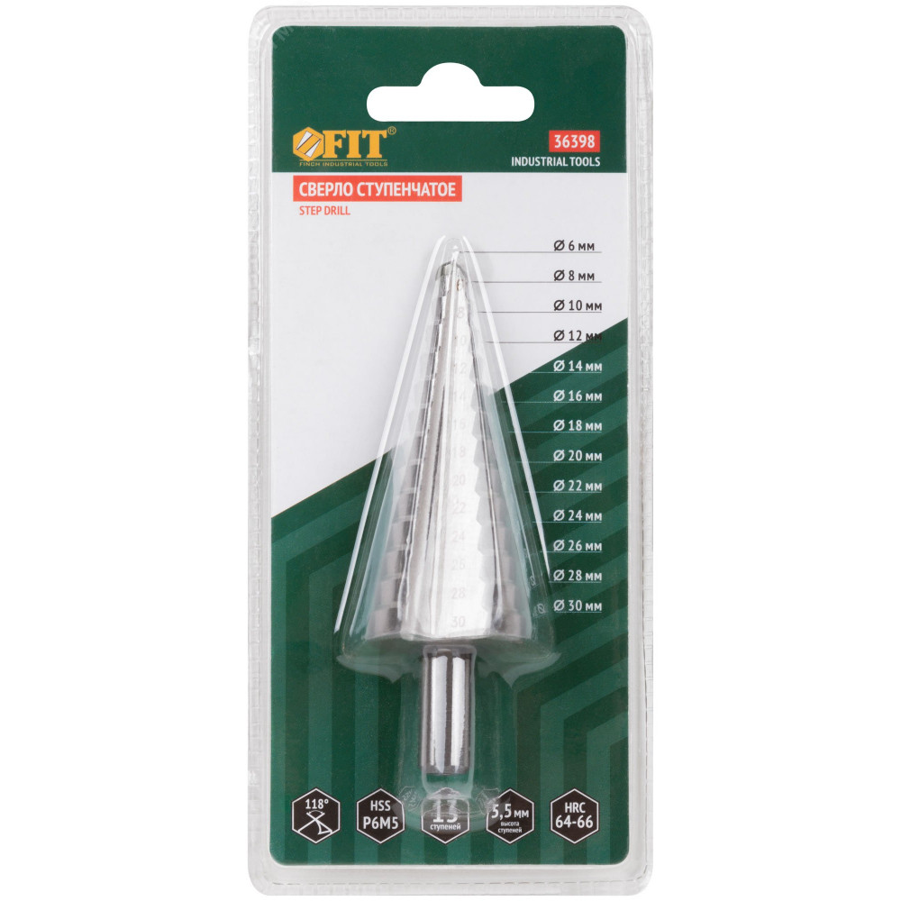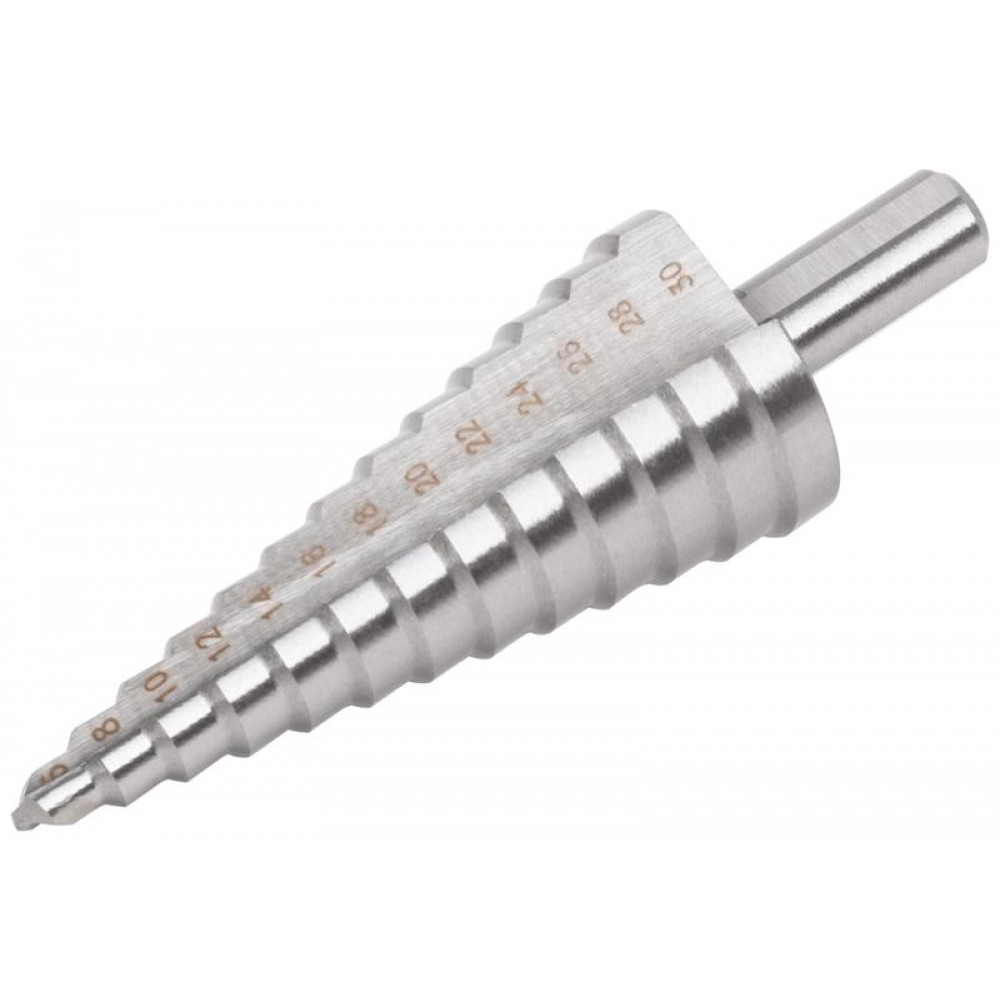 Сверло ступенчатое HSS (Р6М5) по металлу, 13 ступеней, 6-30 мм 36398, Сверло, метчик, плашка