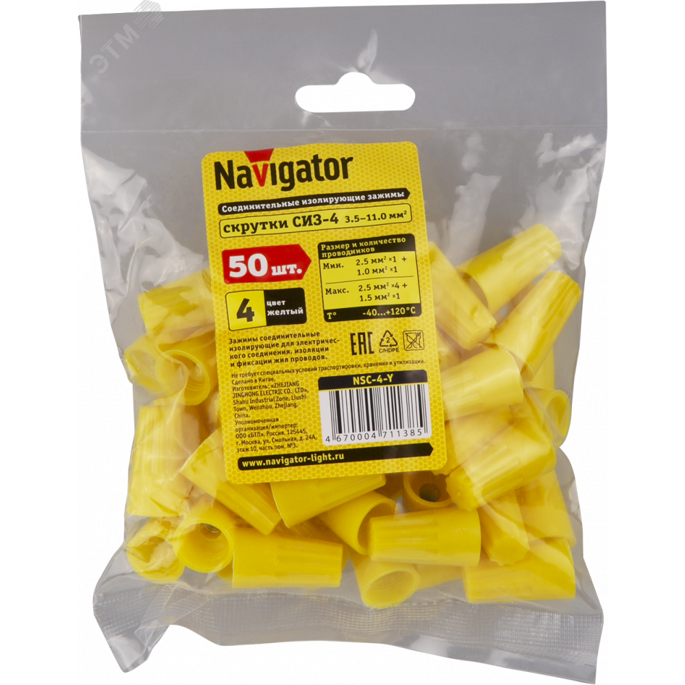 Скрутка СИЗ-4 3.5-11 желтый (50 шт) 17255, Строительно-монтажная клемма и скрутка