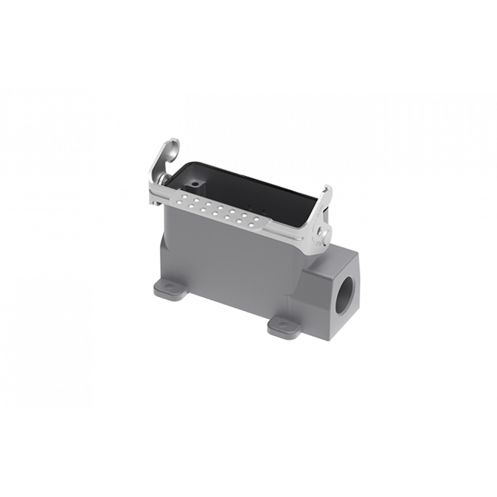 Основание разъема на панель, закрытое, типоразмер 16A, без уплотнителя, 1 отверстие с резьбой для кабельных вводов M20x1,5, с одной защелкой, без защитной крышки, материал корпуса: алюминиевый сплав