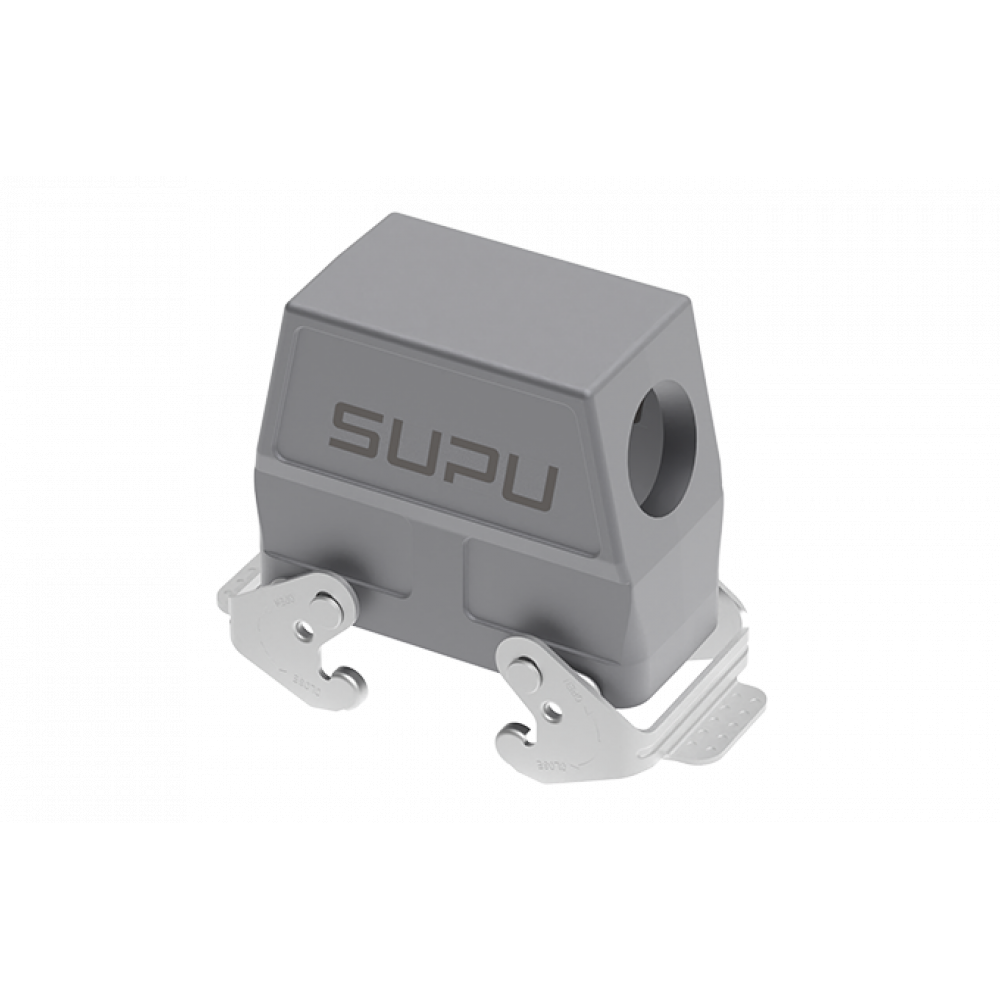 Крышка разъема S16B-SEH-2L.M-PG21, Крышка разъема на кабель, типоразмер 16B, высокое исполнение, без уплотнителя, 1 отверстие с резьбой для кабельных вводов PG21, с боковым расположением, с двумя защелками, материал корпуса: алюминиевый сплав