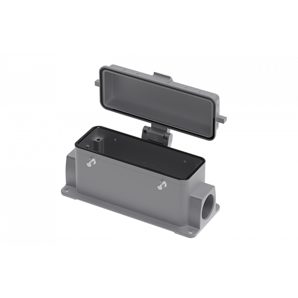 Основание разъема на панель, закрытое, типоразмер 24B, с уплотнителем, 2 отверстия с резьбой для кабельных вводов M25x1,5, без защелок (упоры для двух защелок), с защитной крышкой, материал корпуса: алюминиевый сплав