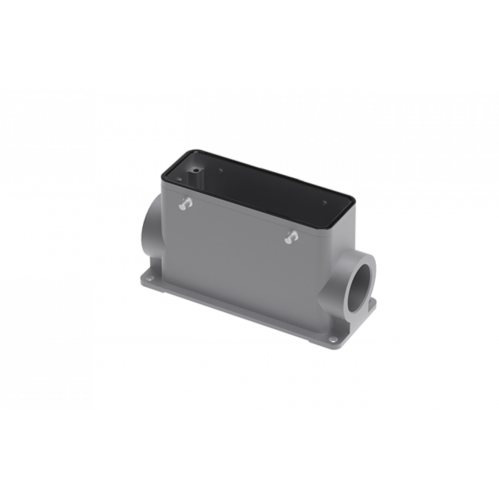 Основание разъема на панель, закрытое, типоразмер 24B, высокое исполнение, с уплотнителем, 1 отверстие с резьбой для кабельных вводов M32x1,5, без защелок (упоры для двух защелок), без защитной крышки, материал корпуса: алюминиевый сплав