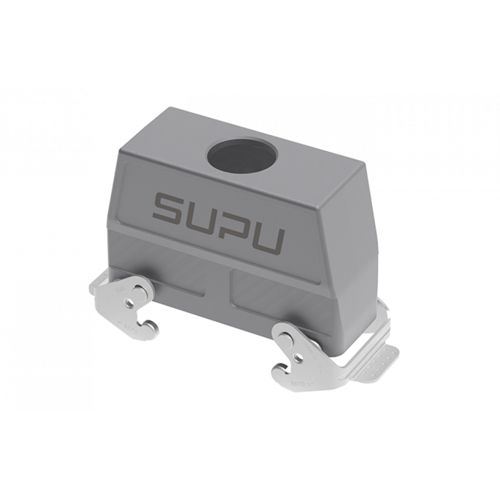 Доставка Крышка разъема S24B-TEH-2L.M-PG21 , Крышка разъема на кабель, типоразмер 24B, высокое исполнение, без уплотнителя, 1 отверстие с резьбой для кабельных вводов PG21, с верхним расположением, с двумя защелками, материал корпуса: алюминиевый сплав