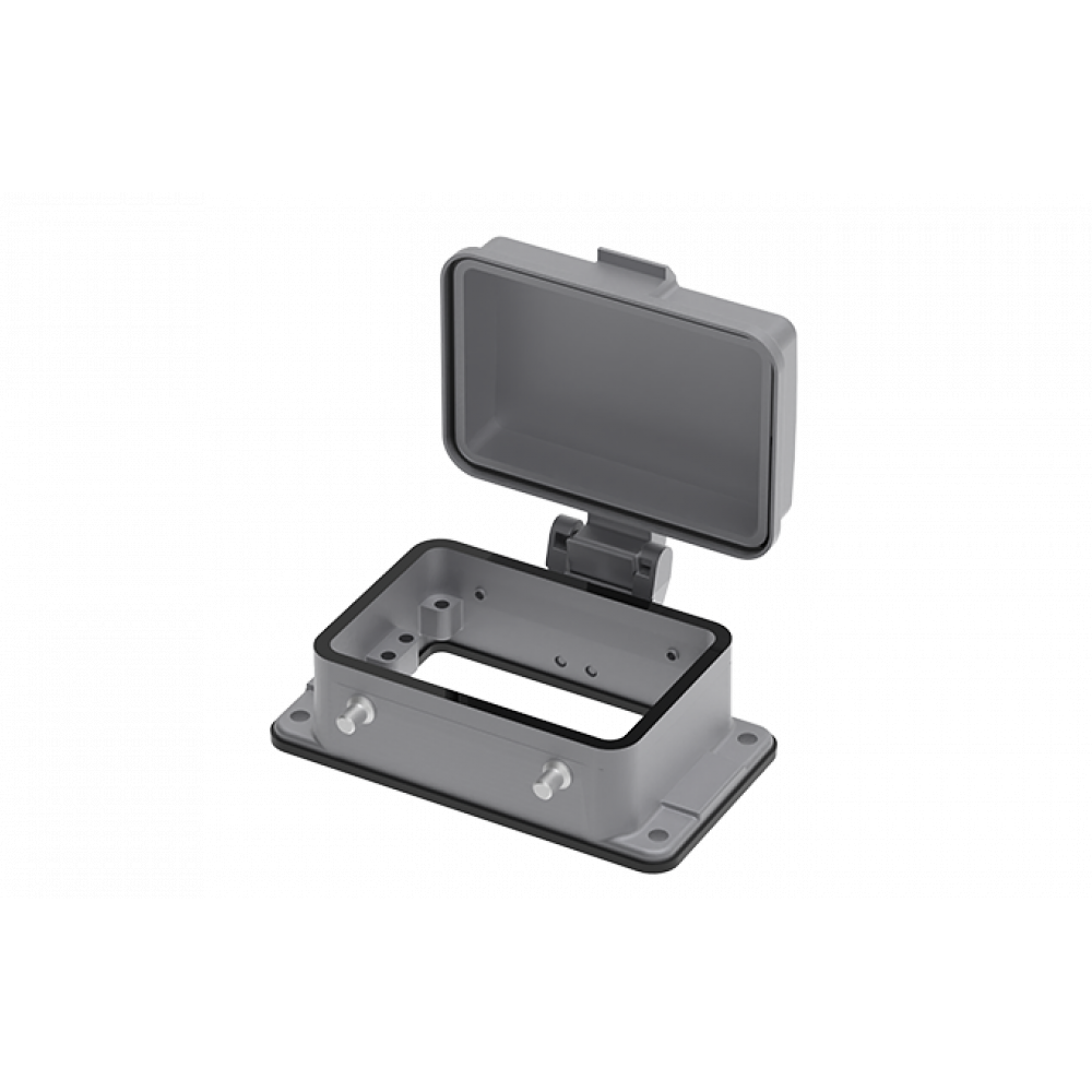 Основание разъема на панель, открытое, типоразмер 32A, с уплотнителем, без защелок (упоры для двух защелок), с металлической защитной крышкой, материал корпуса: алюминиевый сплав