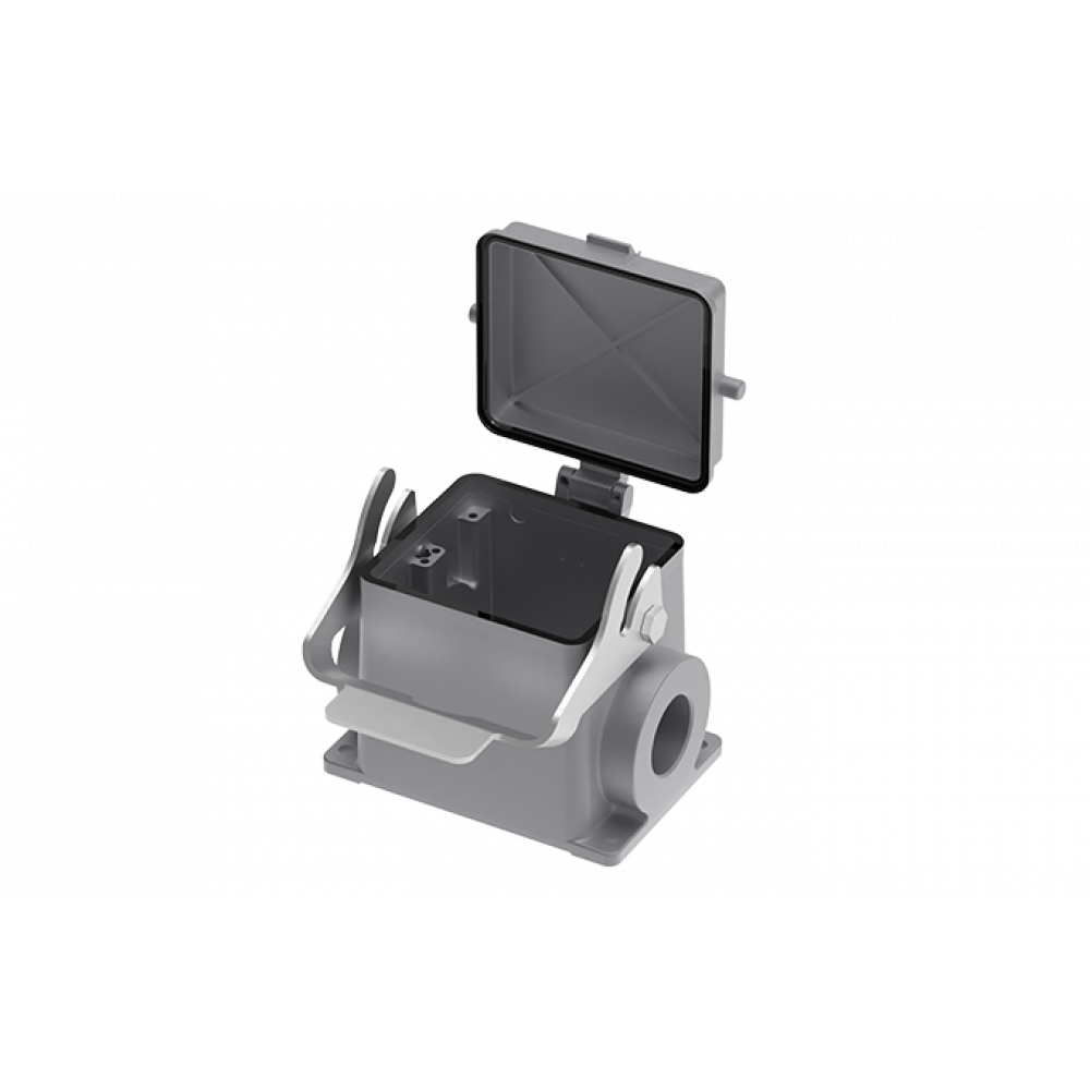 Основание разъема на панель, закрытое, типоразмер 32B, с уплотнителем, 1 отверстие с резьбой для кабельных вводов PG36, с одной защелкой, с защитной крышкой, материал корпуса: алюминиевый сплав