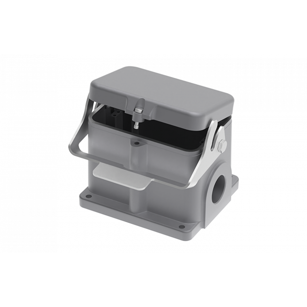Основание разъема на панель, закрытое, типоразмер 48B, с уплотнителем, 1 отверстие с резьбой для кабельных вводов M32x1,5, с одной защелкой, с защитной крышкой, материал корпуса: алюминиевый сплав