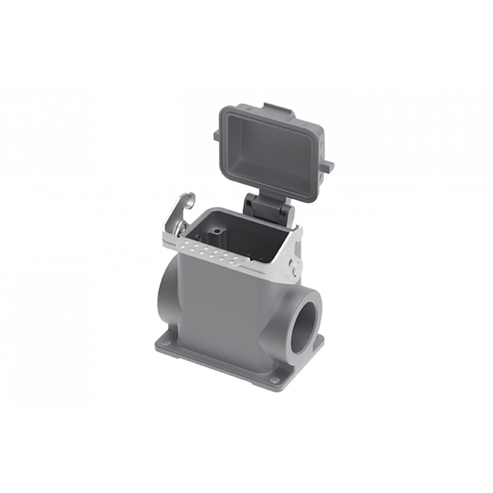 Основание разъема на панель, закрытое, типоразмер 6B, высокое исполнение, с уплотнителем, 2 отверстия с резьбой для кабельных вводов M25x1,5, с одной защелкой, без защитной крышки, материал корпуса: алюминиевый сплав