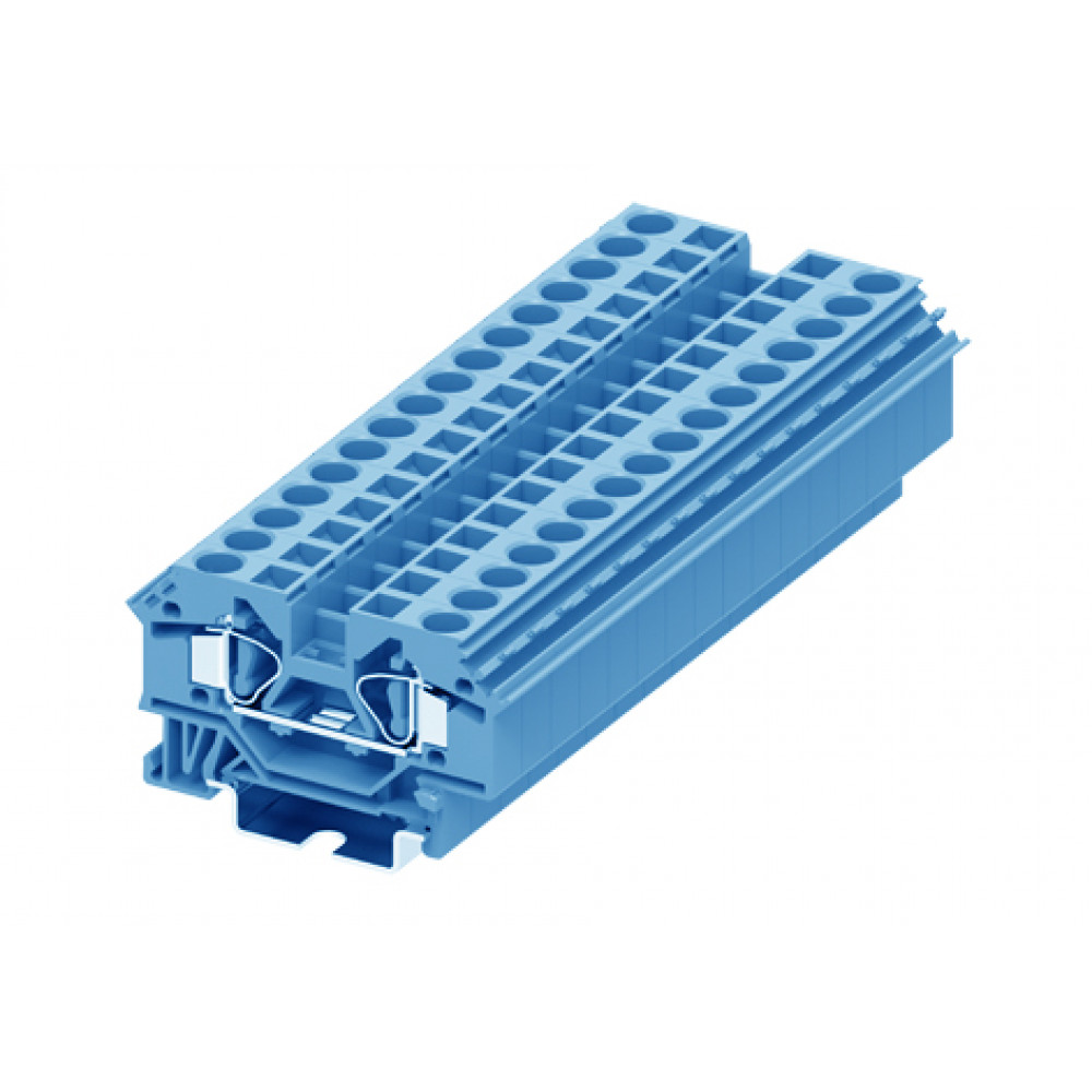 Проходная клемма, тип фиксации провода: пружинный, номинальное сечение: 6 мм кв., 41A, 800V, ширина: 8 мм, цвет: синий, тип монтажа: DIN35