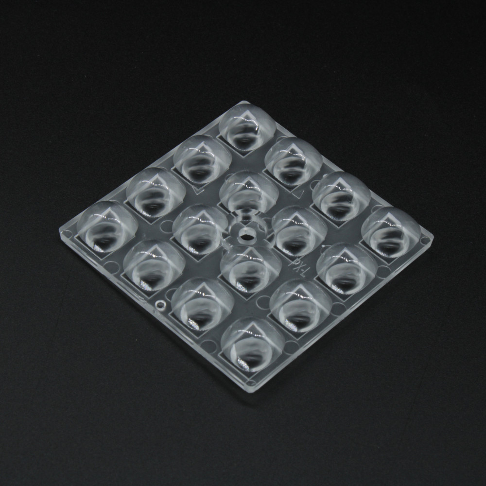 Групповая квадратная линза 4x4 на 16 светодиодов 3030 эфф=93% пешеходная ассиметр. диаграмма (левая сторона), 50x50мм H:4,4мм, PMMA