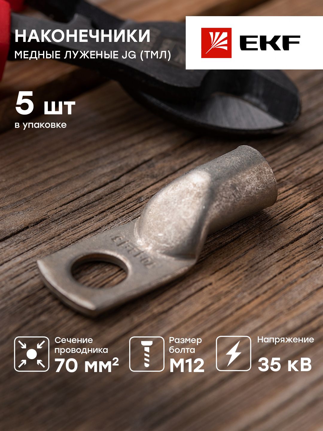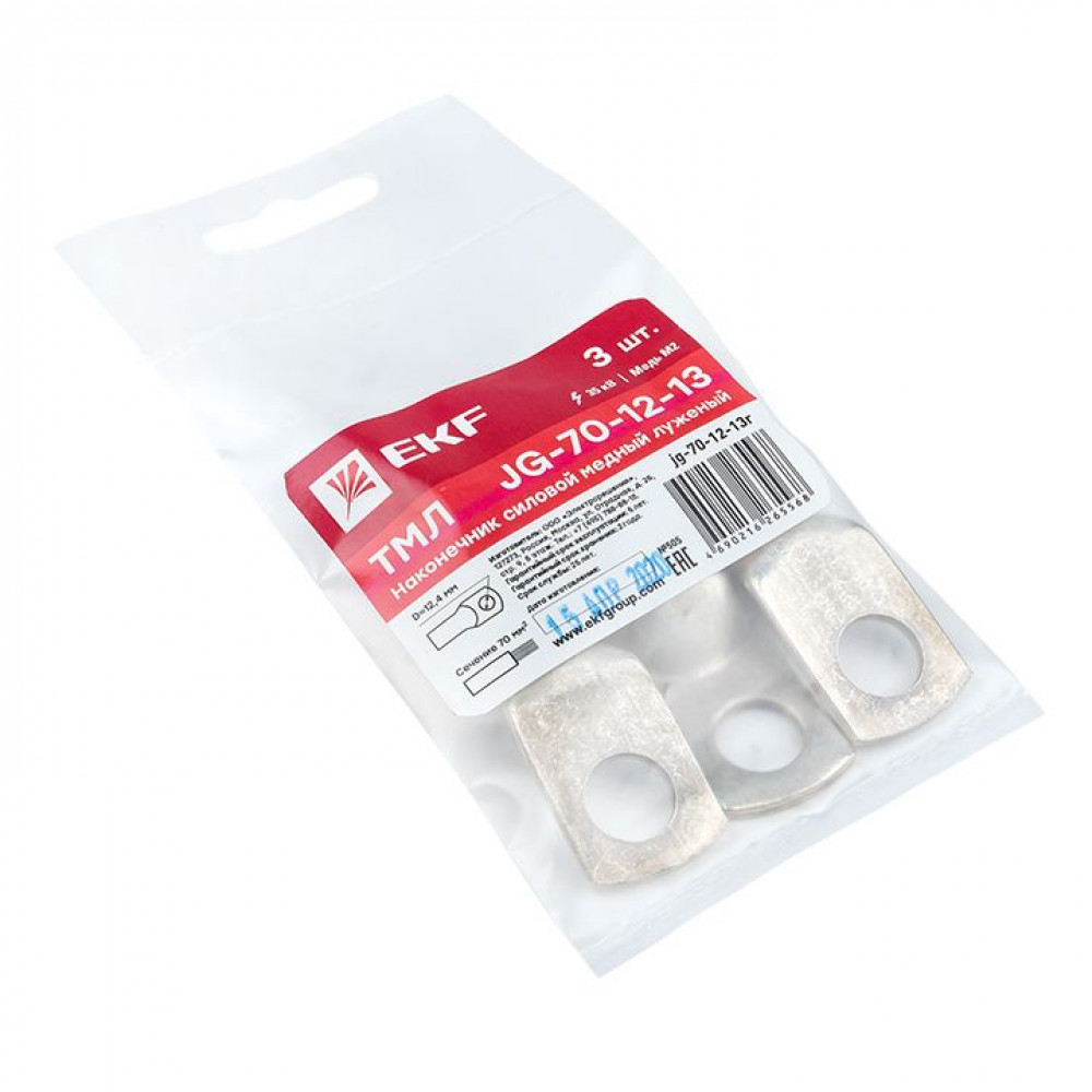 Описание Наконечник силовой медный луженый ТМЛ JG-70-12-13 (уп.3шт) PROxima EKF jg-70-12-13r