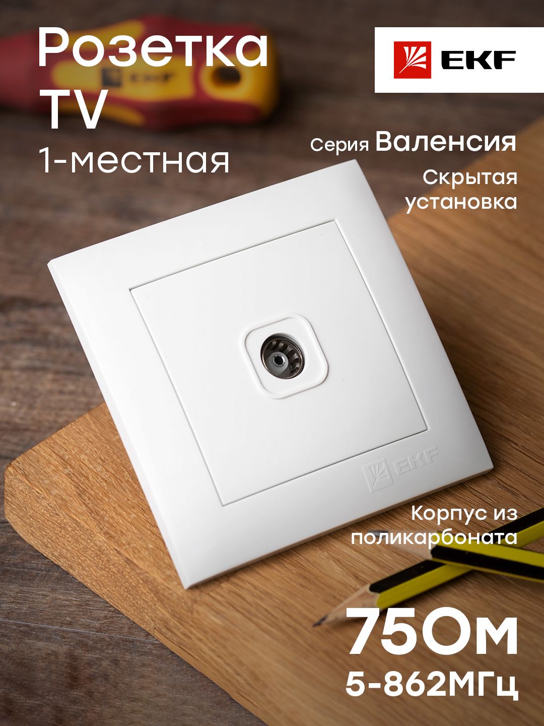 Доставка Валенсия розетка телевизионная 1-местная 75Ом 5-862МГц белая EKF PROxima