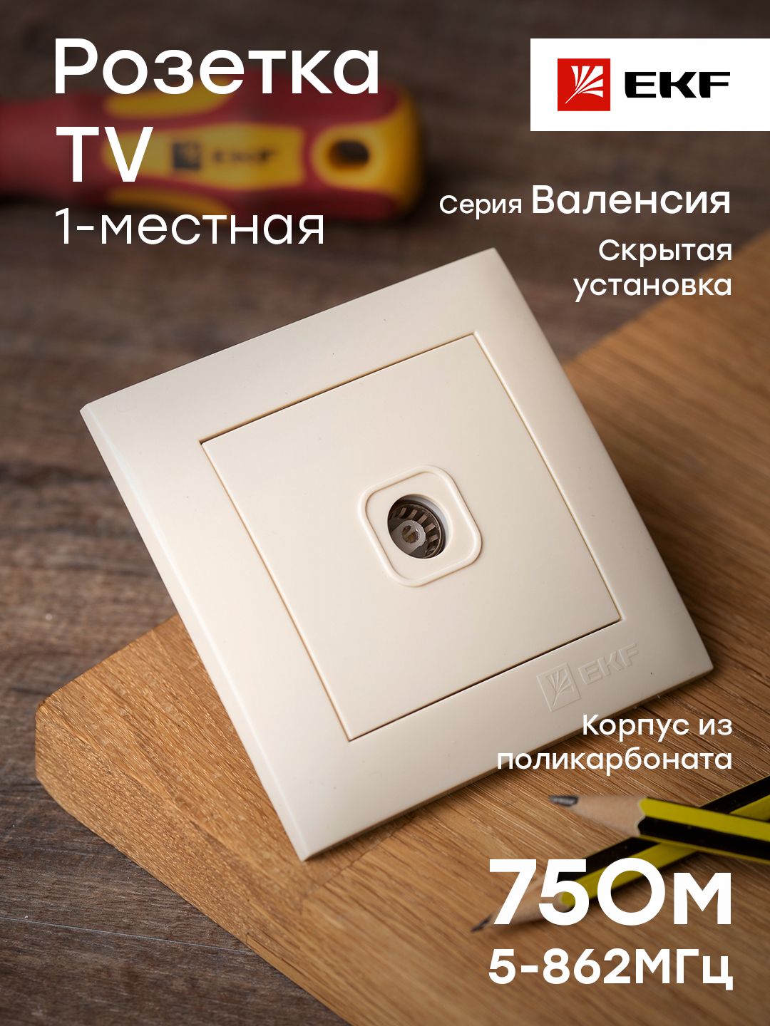 Доставка Валенсия розетка телевизионная 1-местная 75Ом 5-862МГц кремовая EKF PROxima
