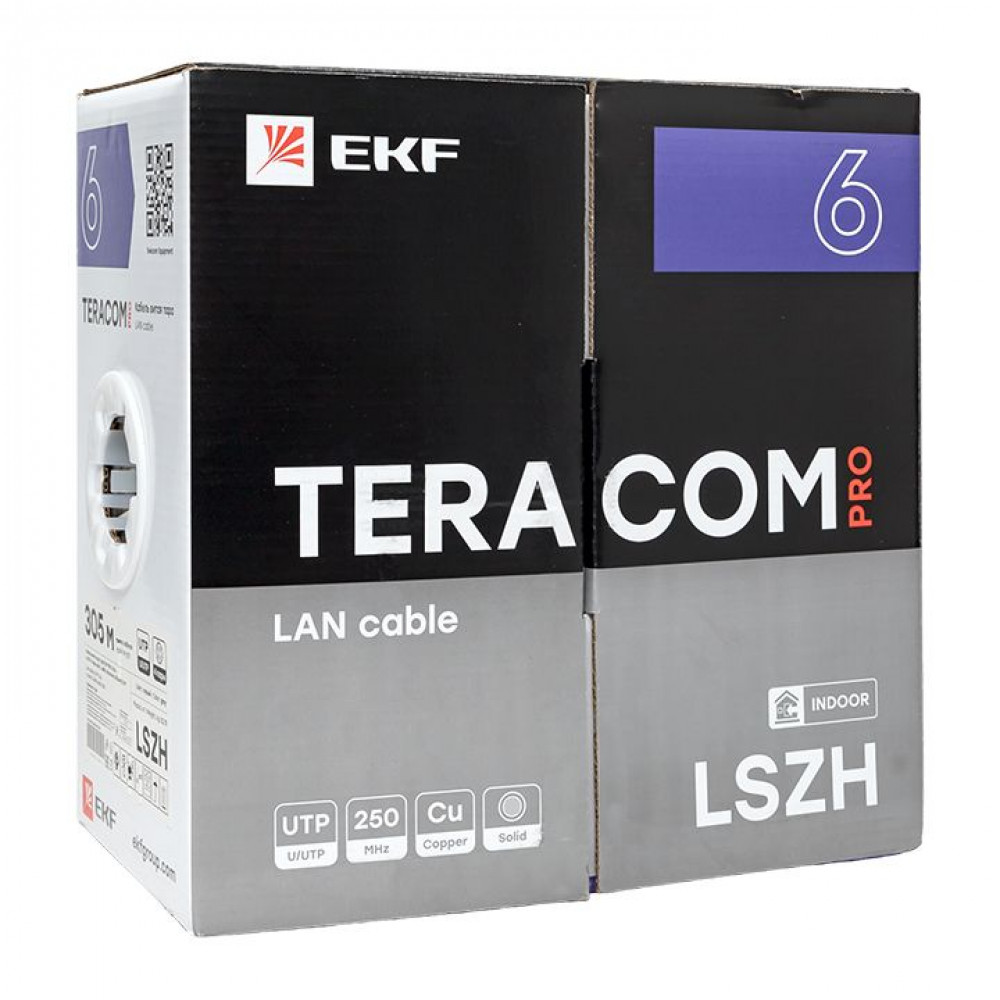 Кабель витая пара TERACOM PRO Cat.6 U/UTP 4 пары solid 23AWG оболочка LSZH нг(А)-HF цвет серый (упак. 305м), Кабель и провод для телефонии и передачи данных