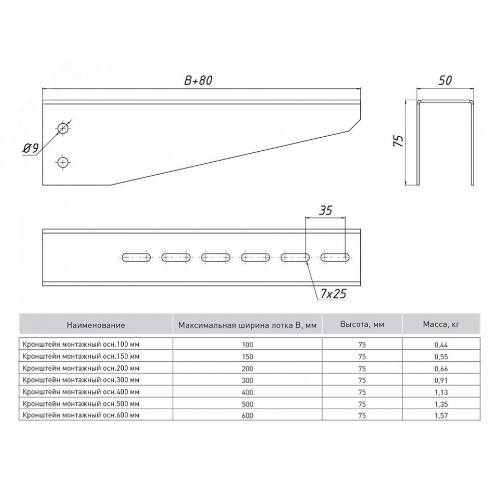 Описание Кронштейн монтажный 600 мм (1,5 мм) EKF