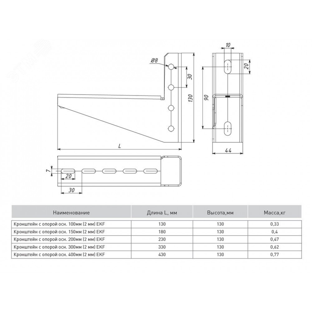 Описание Кронштейн с опорой основание 200 мм (2 мм) EKF