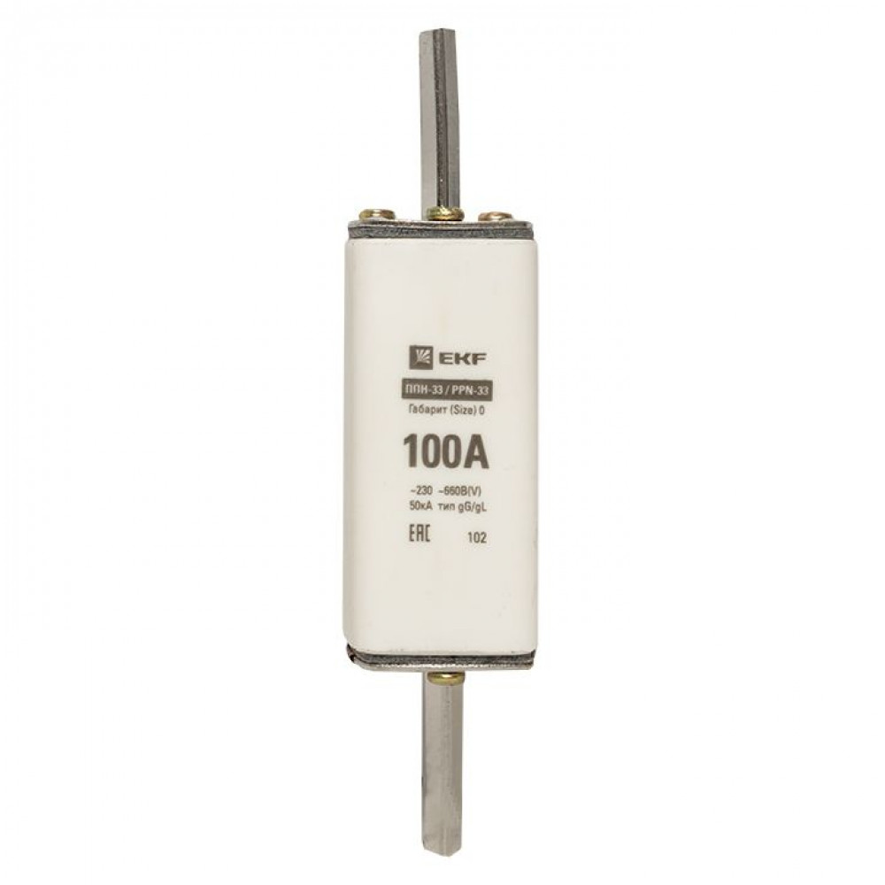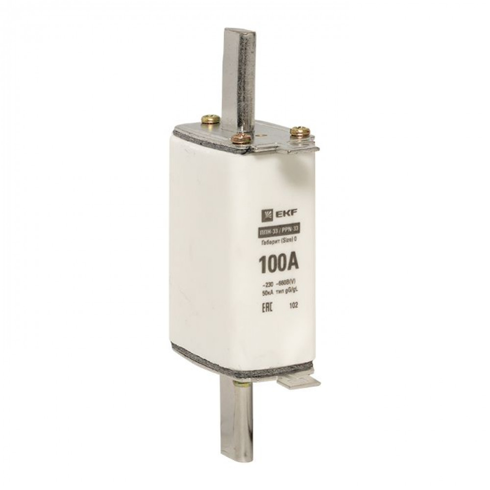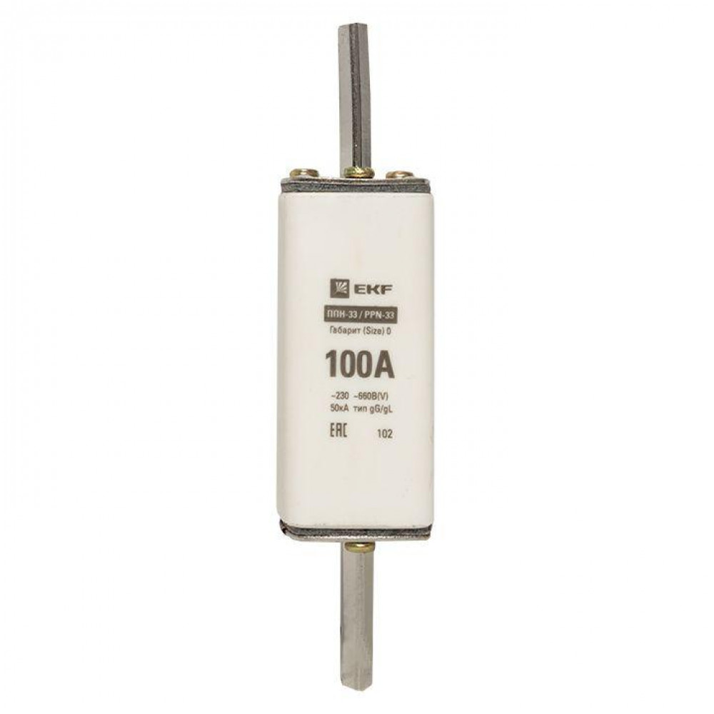 Плавкая вставка ППН-33 160/100А габарит 0 EKF. Предохранители плавкие ППН EKF, укомплектованные плавкими вставками типа gG/gL, предназначаются для защиты кабельных линий и промышленных электроустановок от токов перегрузки и короткого замыкания. Предохранители применяются в электрических сетях переменного тока частотой 50 Гц с напряжением до 660В. Применяются для крепления в распределительных и вводно-распределительных устройствах. Предохранители плавкие ППН могут устанавливаться в основание с держателем, а также в специально предназначенные рубильники. В комплект поставки предохранителей плавких ППН основание с держателем не входит и приобретается отдельно.