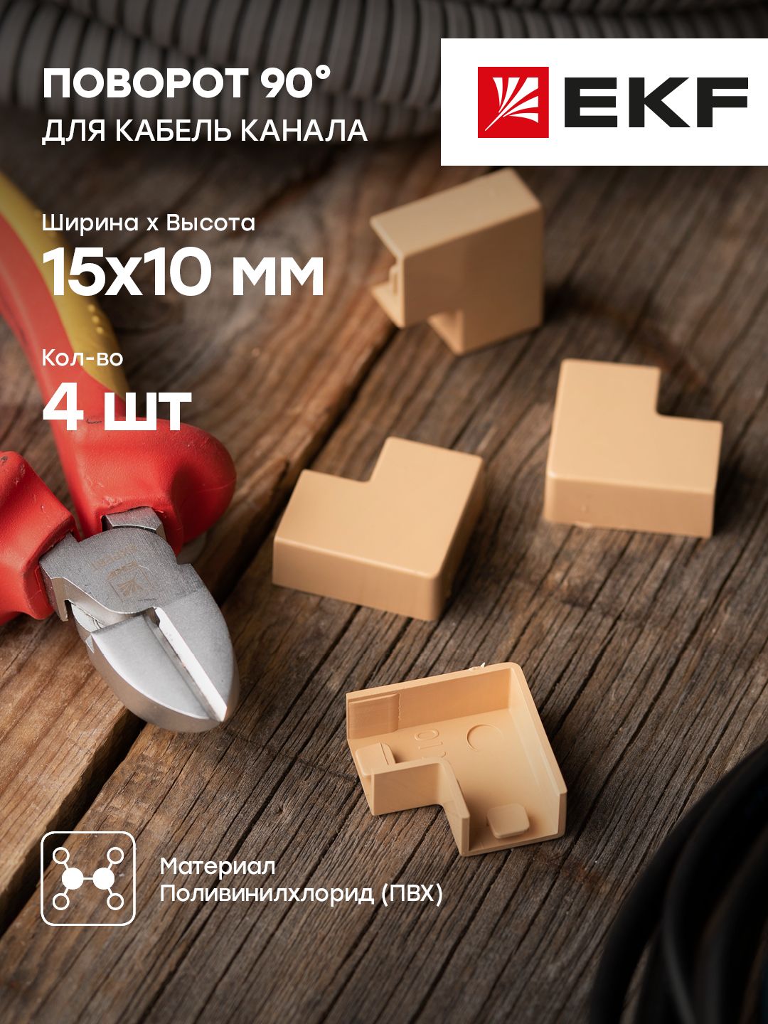 Описание Поворот 90 гр. (15х10) (4 шт) светлое дерево EKF-Plast