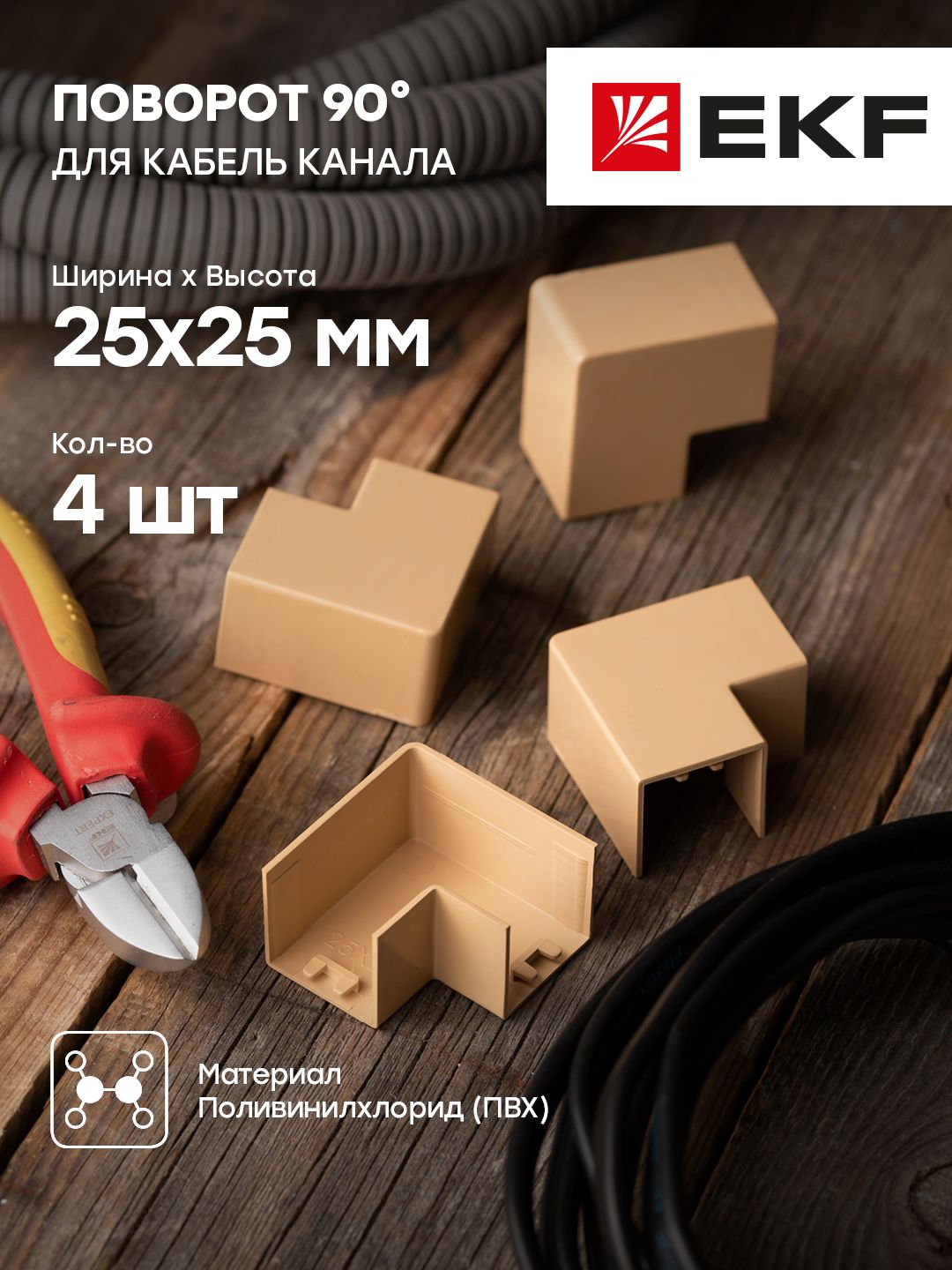 Поворот 90 гр. (25х25) (4 шт) светлое дерево EKF-Plast, Аксессуар к кабеленесущей системе