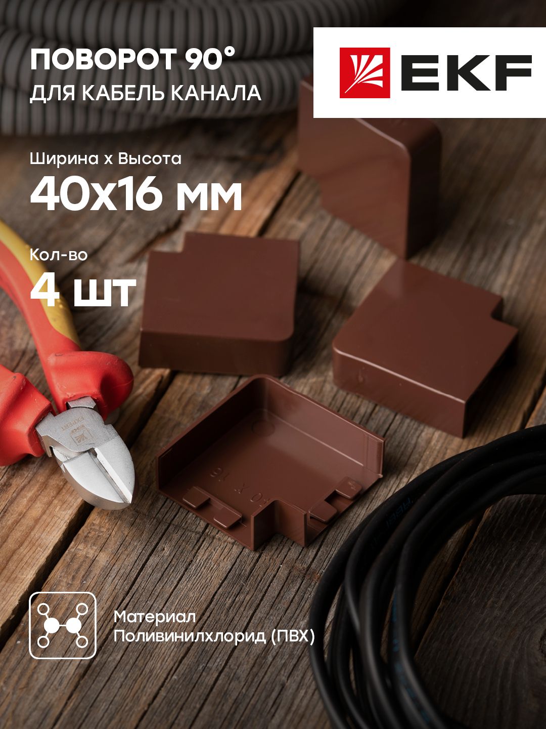 Описание Поворот 90 гр. (40х16) (4 шт) темное дерево EKF-Plast