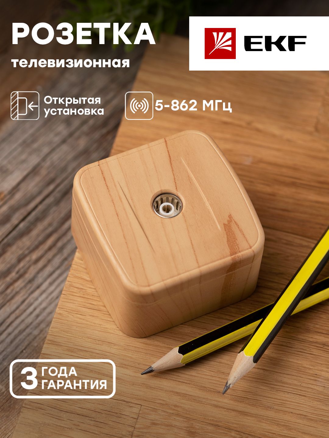 Описание Розетка TV 1-местная ОП Минск 75Ом 5-862МГц светлое дерево EKF