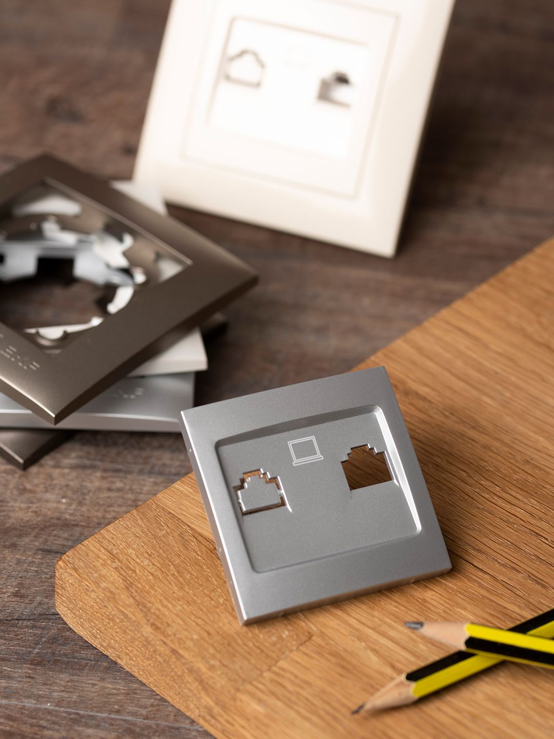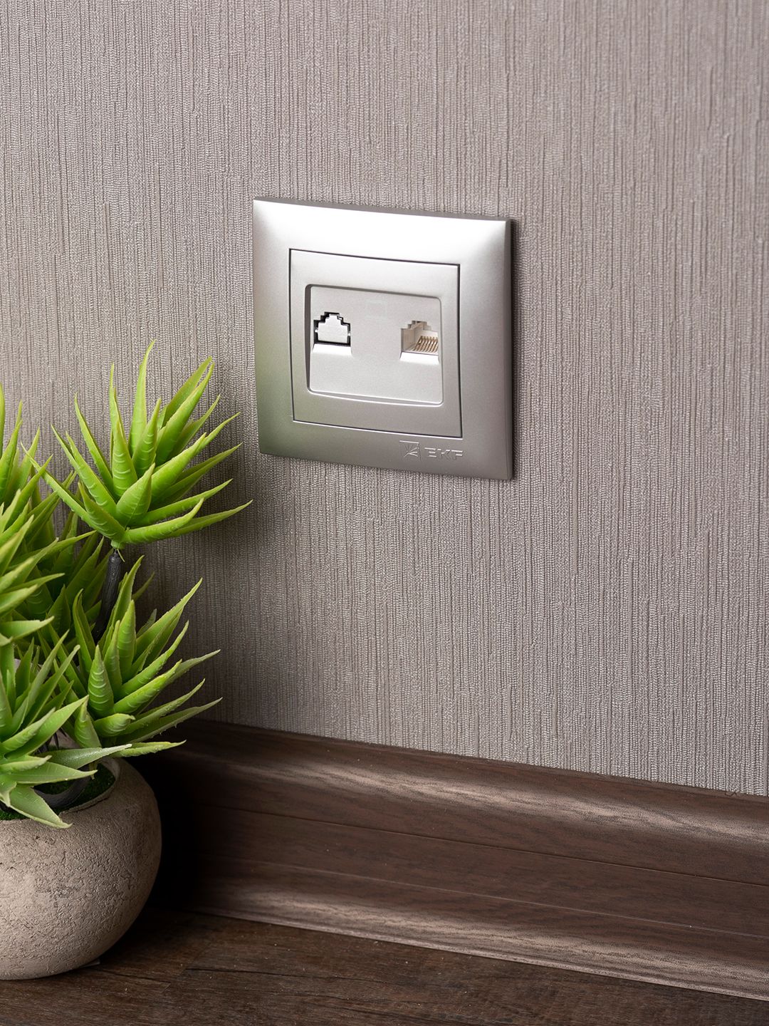 Валенсия лицевая панель розетки RJ-45 1-местная сталь EKF PROxima, Розетка скрытого монтажа