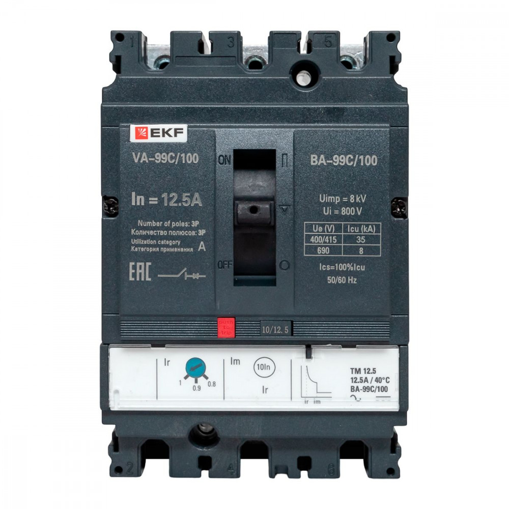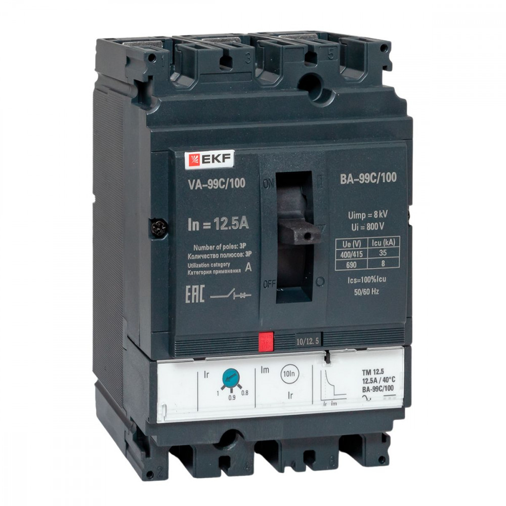 Выключатель автоматический ВА-99C 100/12,5А 3P 35кА EKF, Выключатель автоматический силовой