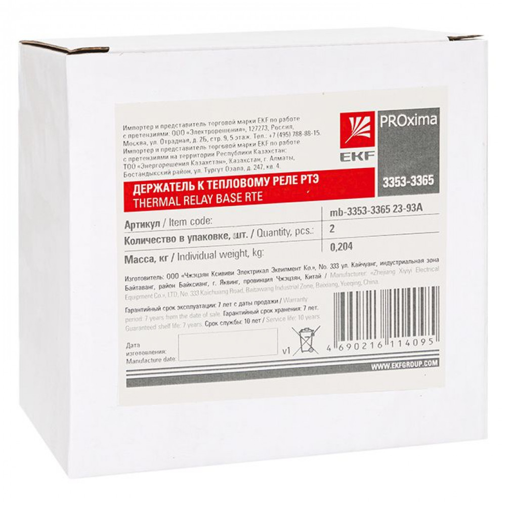 Описание Держатель к тепловому реле РТЭ 3353-3365 EKF PROxima