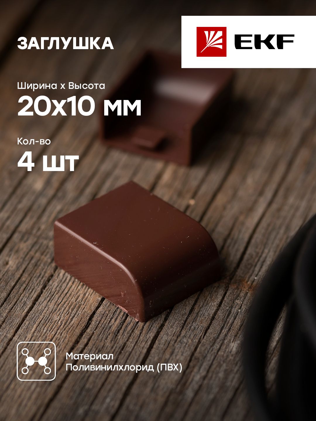 Описание Заглушка (20х10) (4 шт) темное дерево EKF-Plast