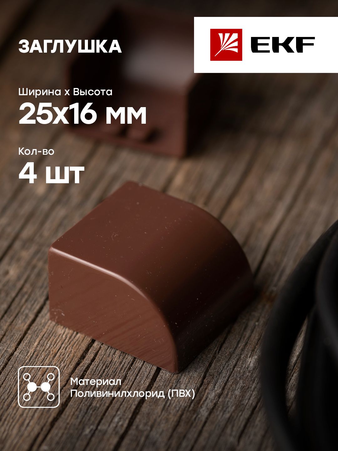 Описание Заглушка (25х16) (4 шт) темное дерево EKF-Plast