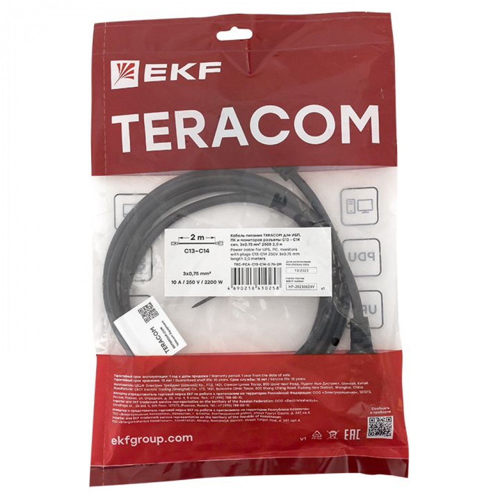 Описание Кабель питания TERACOM для ИБП, ПК и мониторов разъемы C13 - C14 сечение 3x0.75мм2 250В длина 2,0 метра