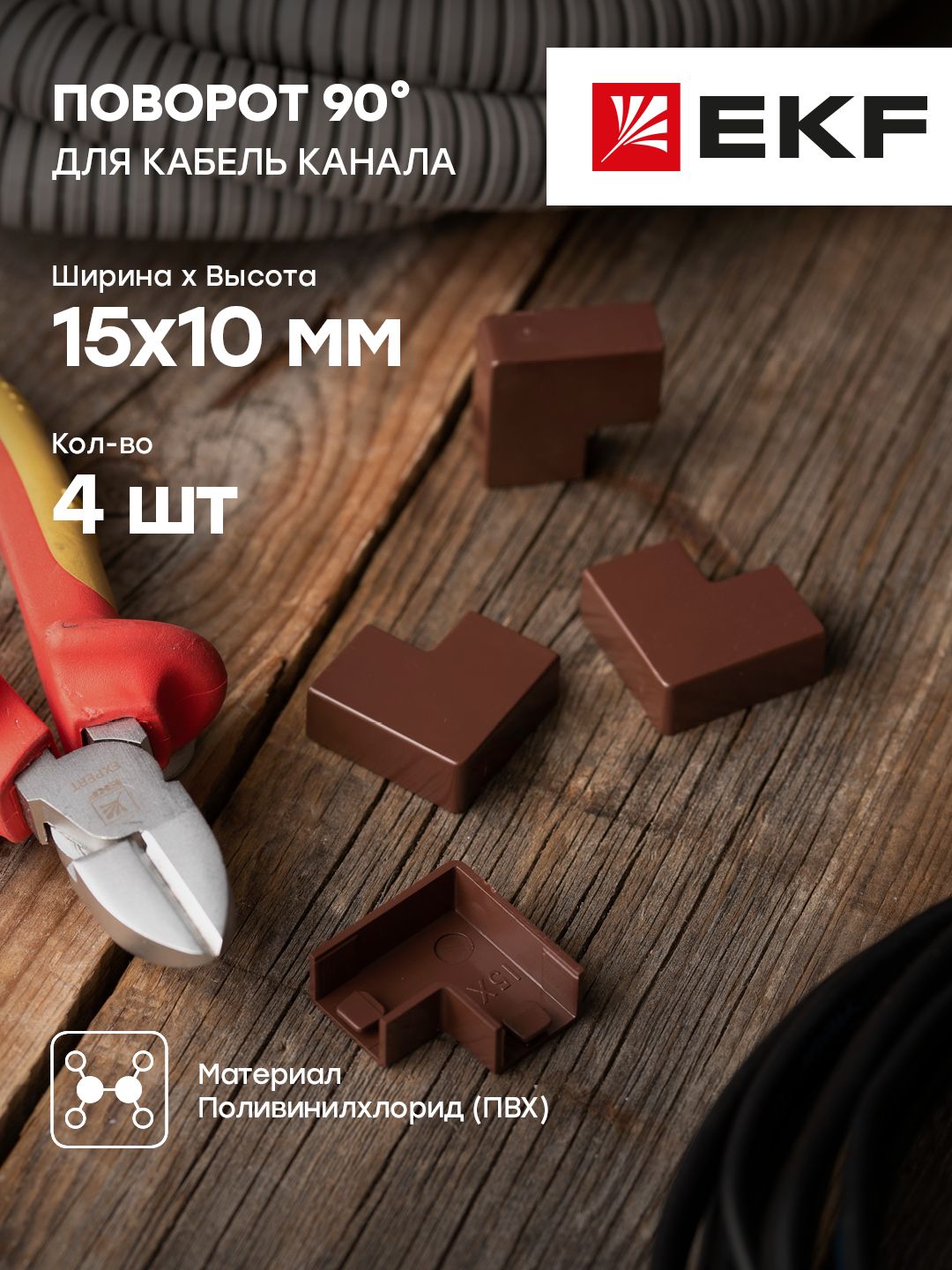 Поворот 90 гр. (15х10) (4 шт) темное дерево EKF-Plast, Аксессуар к кабеленесущей системе