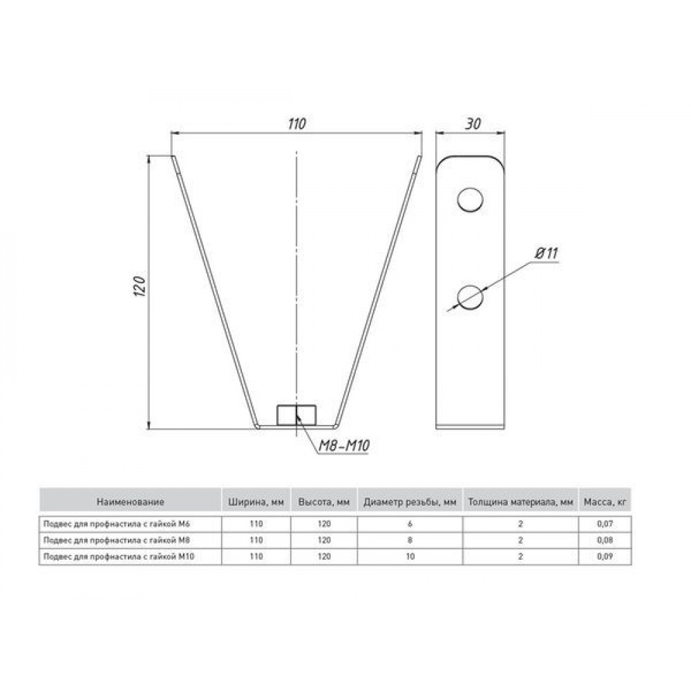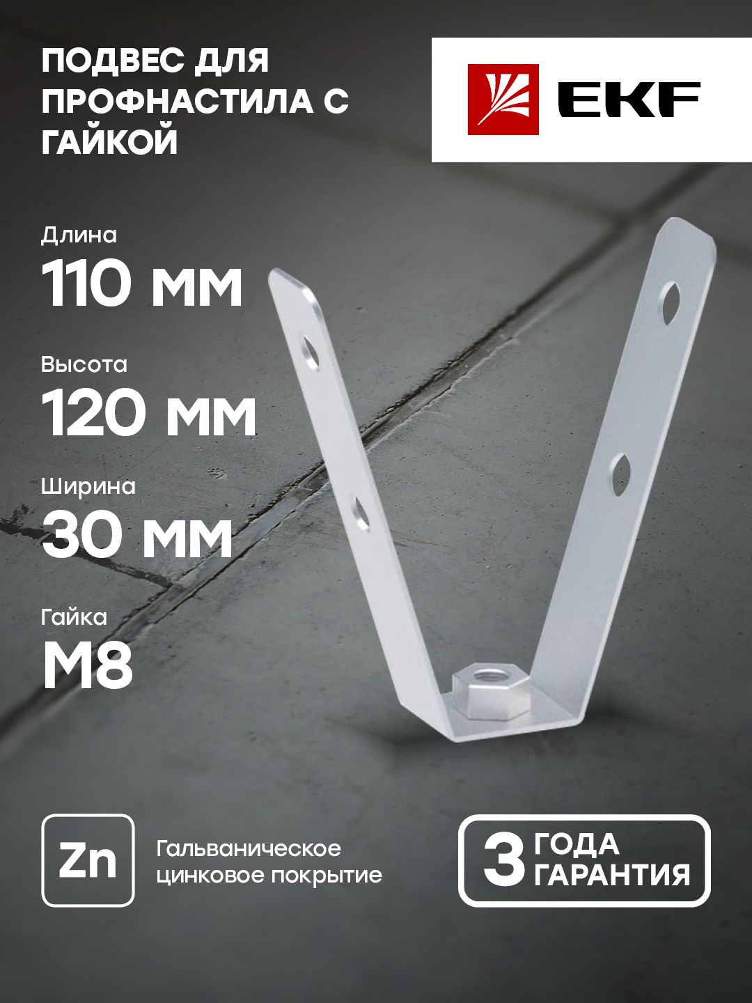 Описание Подвес для профнастила с гайкой М8 (2 мм) EKF