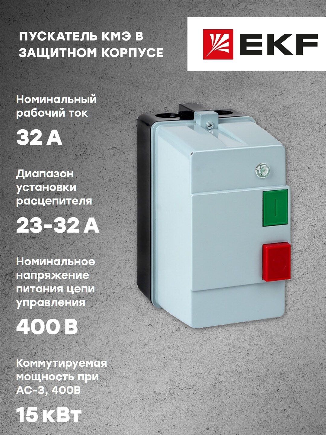 Пускатель в корпусе IP65 КМЭ 32А 400В с РТЭ Ir-23-32А и индик. EKF PROxima, Контактор малогабаритный (миниконтактор)