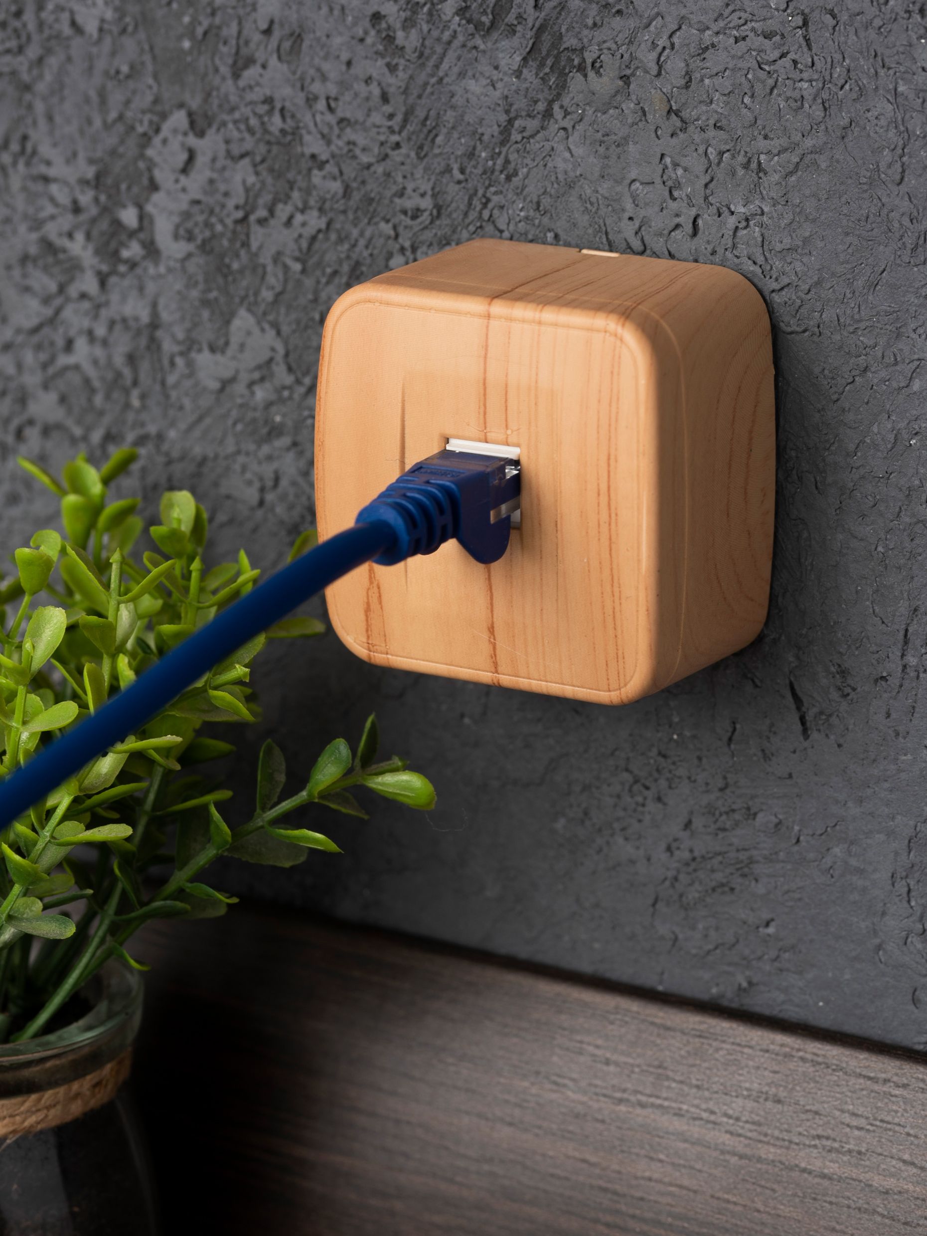 Розетка RJ-45 1-местная ОП Минск, 1А, 120В, светлое дерево EKF →