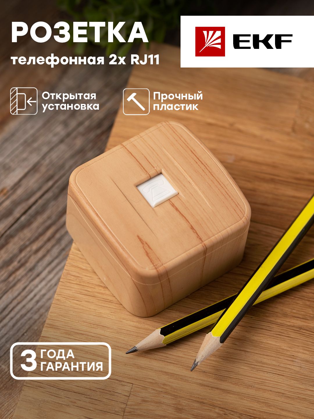 Розетка Phone 1-местная ОП Минск светлое дерево EKF, Розетка открытого монтажа