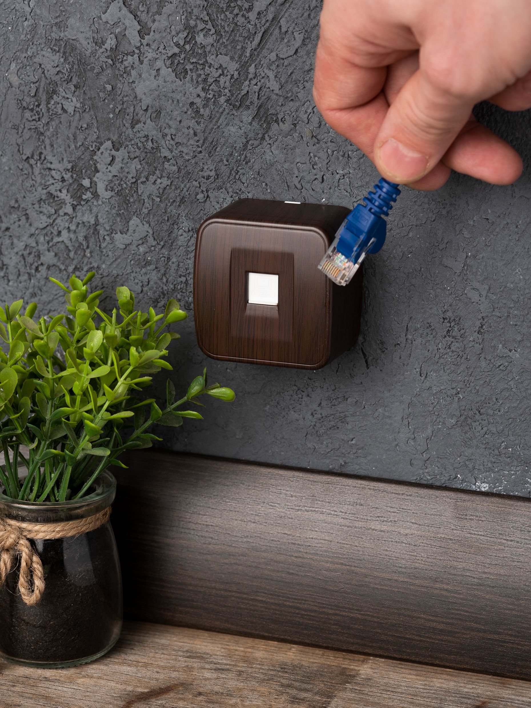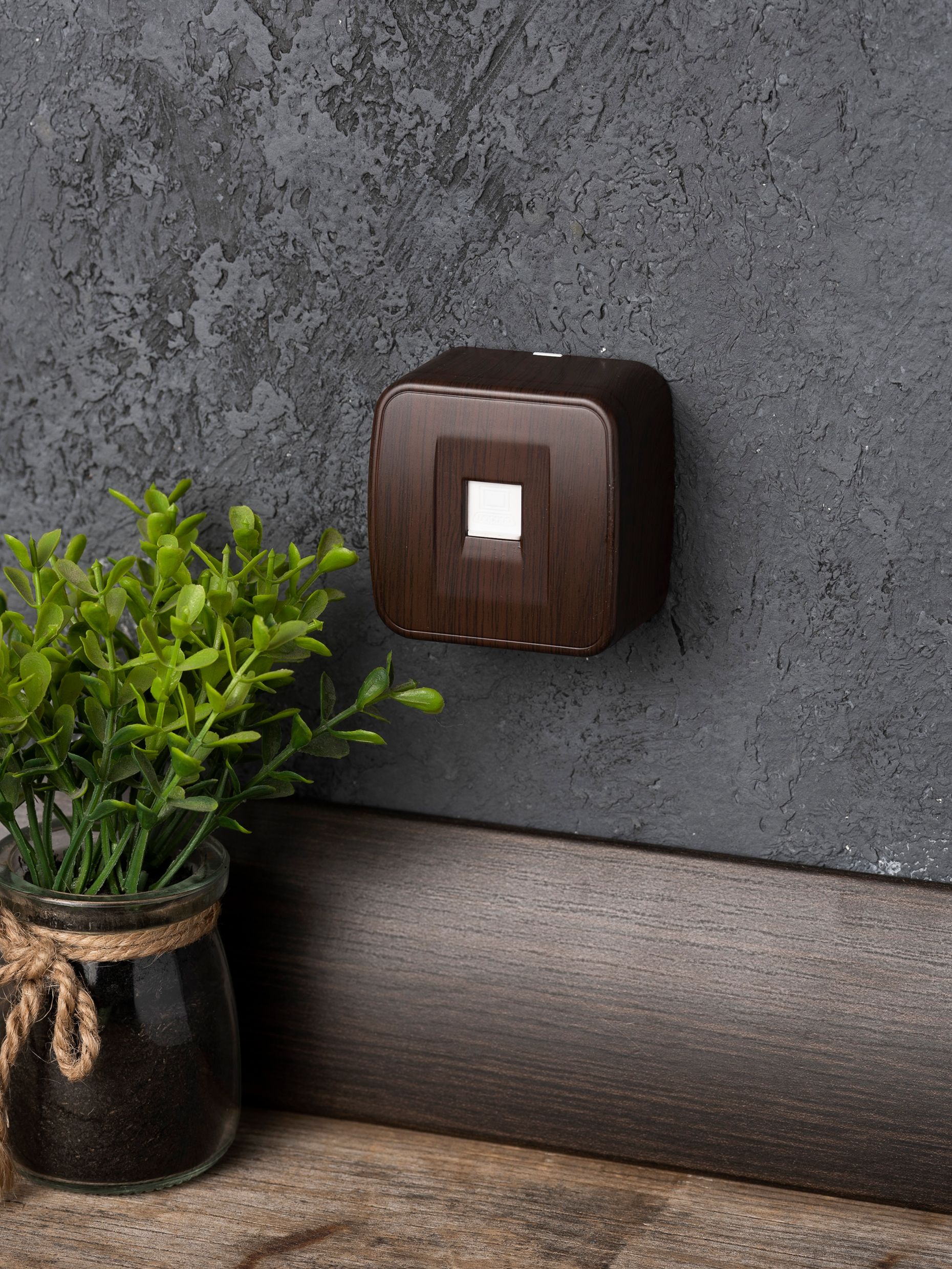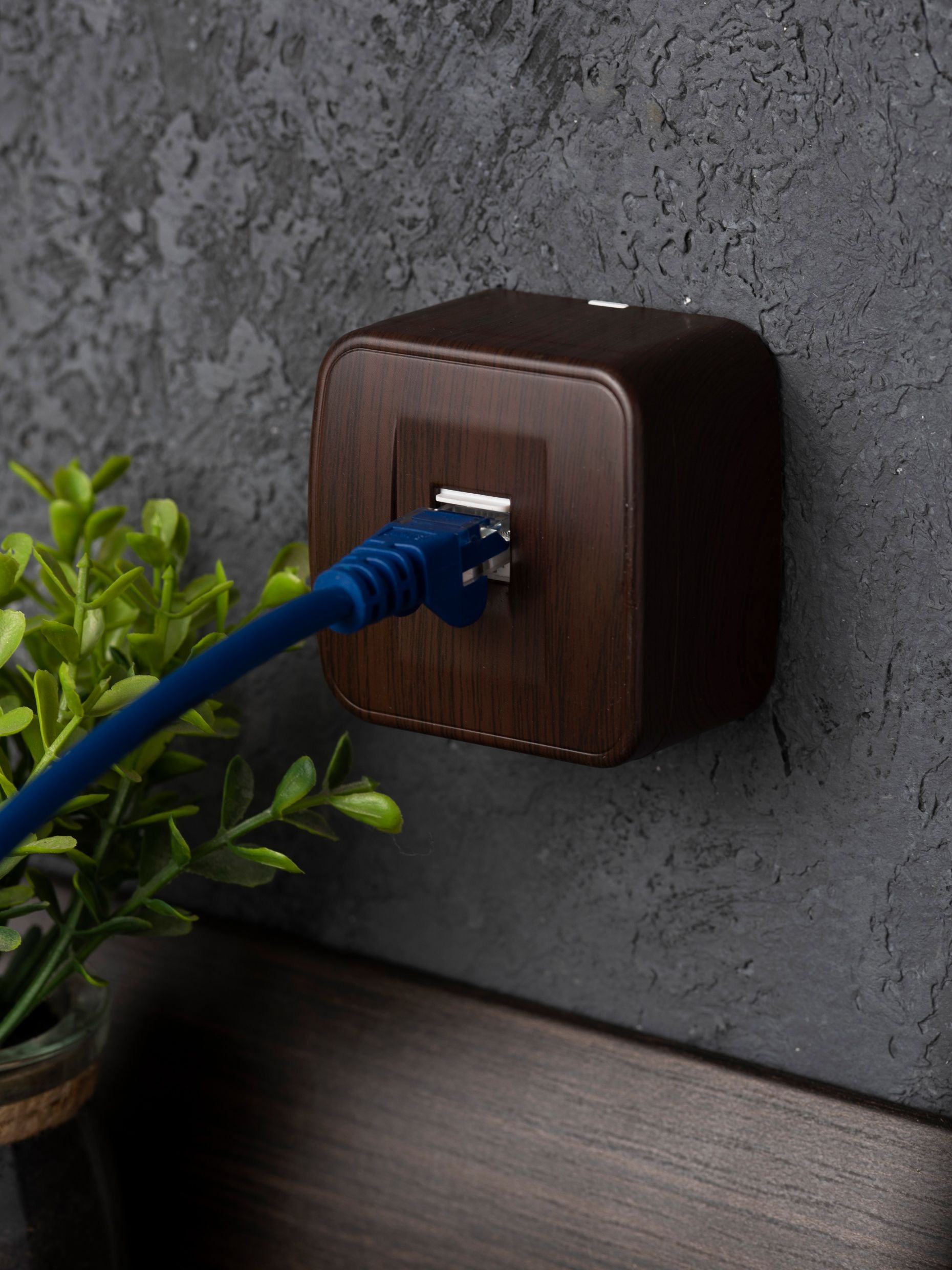 Розетка RJ-45 1-местная ОП Минск, 1А, 120В, т-мное дерево EKF, Розетка открытого монтажа