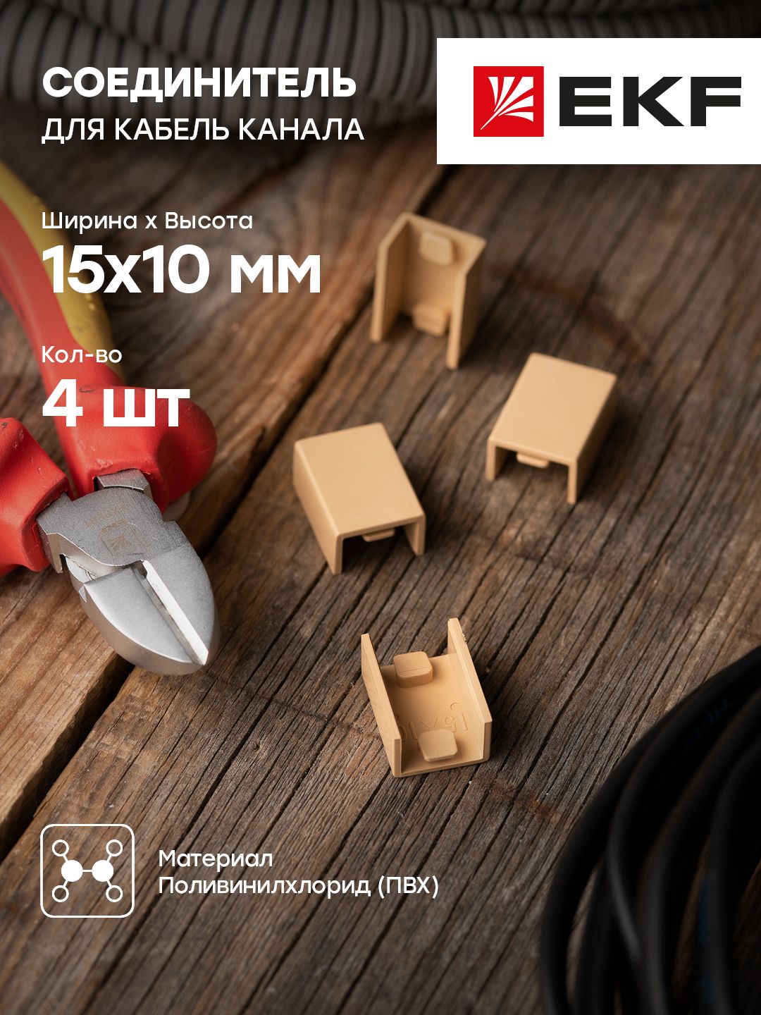 Описание Соединитель (15х10) (4 шт) светлое дерево EKF-Plast