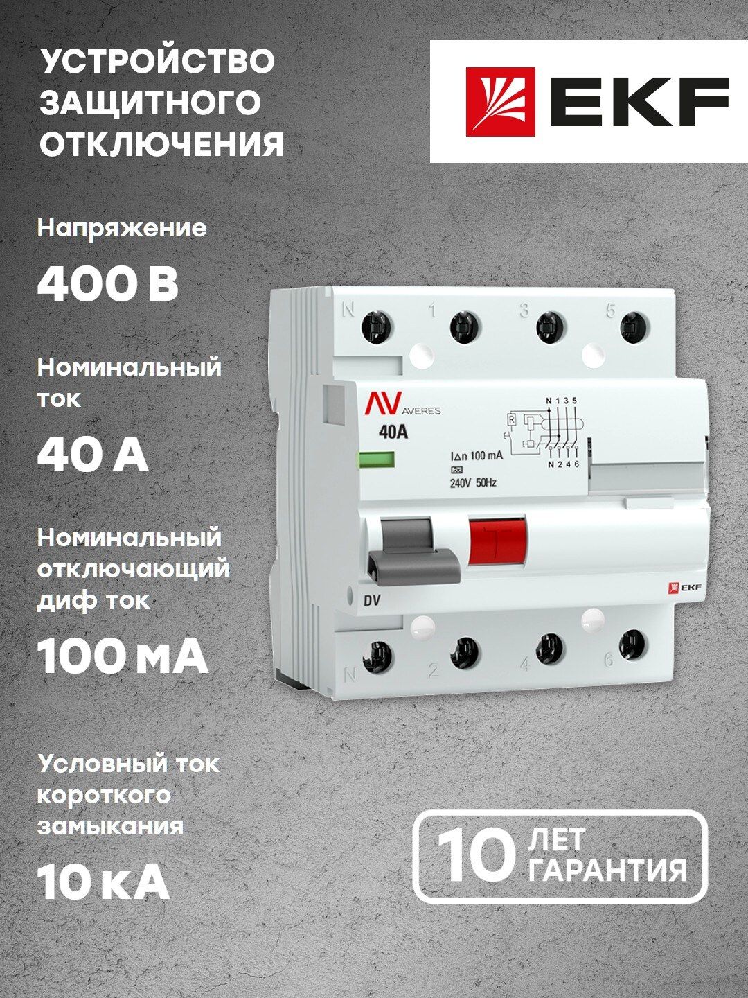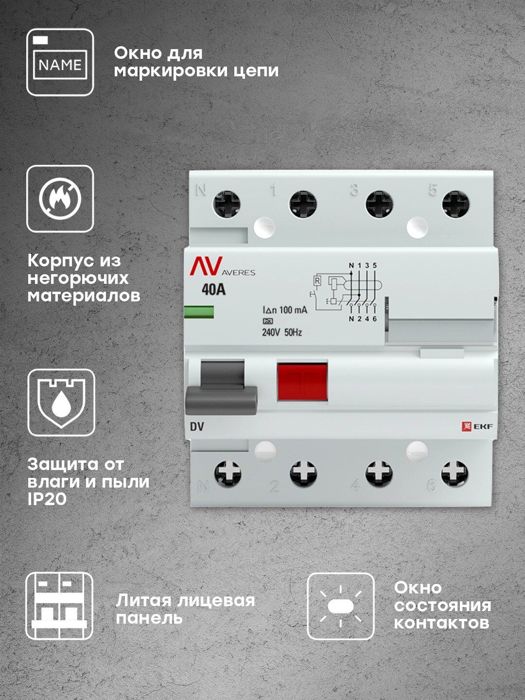 Описание Устройство защитного отключения DV 4P 40А/100мА (A) EKF AVERES