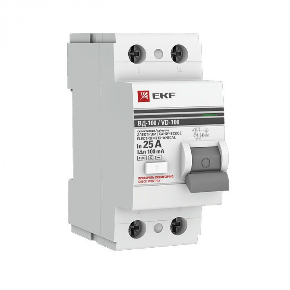 Устройство защитного отключения селективное 2P 25А/100мА (электромеханическое) EKF PROxima, Дифференциальная защита: УЗО, дифф блок
