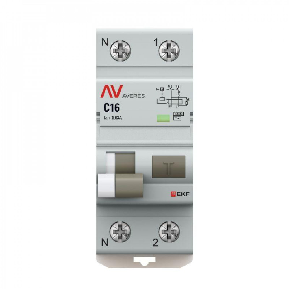 Описание Выключатель автоматический дифференциального тока 2п (1P+N) C 16А 30мА тип AC 10кА DVA-10 AVERES EKF rcbo10-1pn-16C-30-ac-av