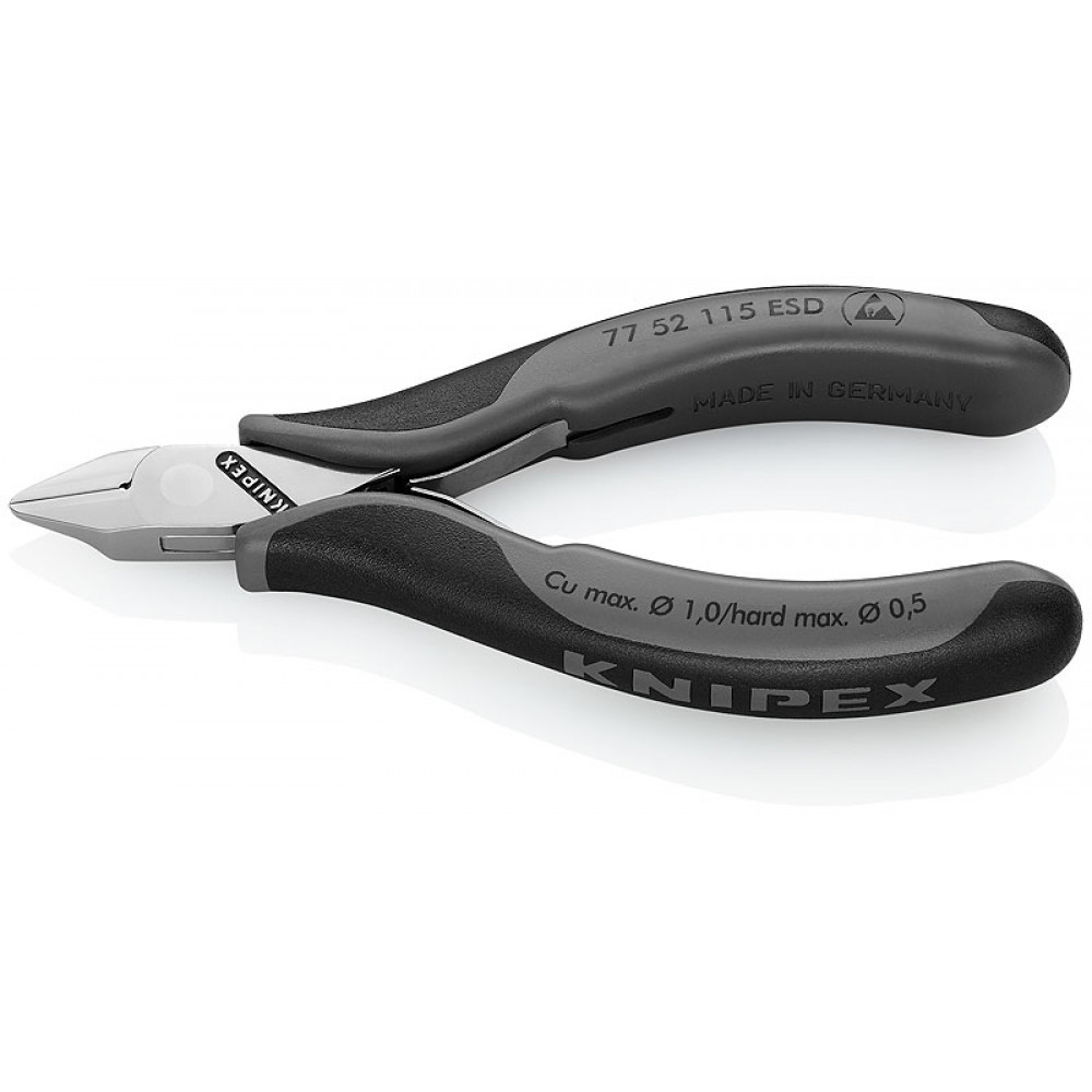 Бокорезы для электроники ESD, острая плоская головка, 115 мм, 2-комп антистатические ручки KN-7752115ESD, Бокорезы
