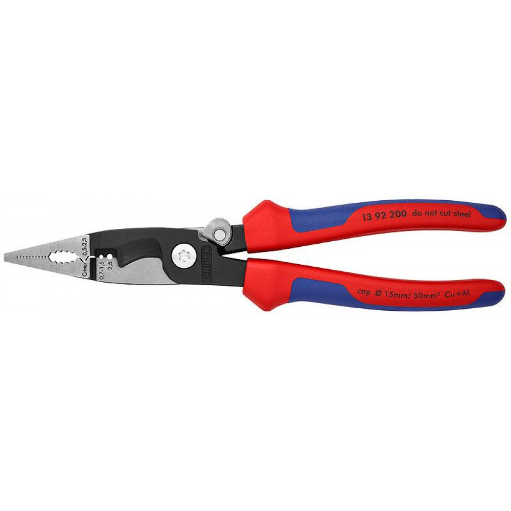 Клещи электромонтажные, 6-в-1, зачистка 0.75 - 1.5 / 2.5 мм2, рез O 15 мм / 50 мм2, 200 мм-9 KN-1392200, Плоскогубцы
