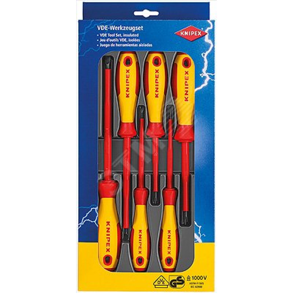 Набор отв-рток VDE диэлектрических, 6 пр., SL3/4/5.5/6.5, PH1/2 KN-002012V01, включает в себя шлицевые отвертки KN-982030, KN-982040, KN-982055, KN-982065 и крестообразные KN-982401, KN-982402